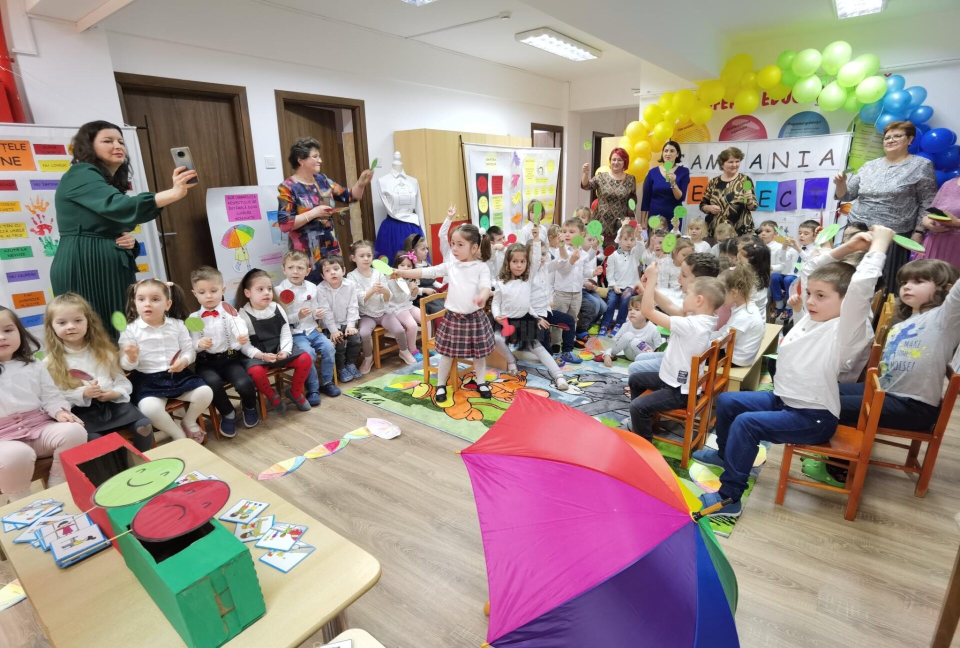 Având alături de ei o serie de invitați speciali – coordonatorul campaniei județene, inspectorul școlar Tatiana Vîntur, managerul Teatrului ”Matei Vișniec”, Angela Zarojanu, dar și Amedeea Vițega, consilier județean, membră a Fundației SEVA, cunoscută pentru implicarea în campanii de combatere a violenței, copiii au demonstrat ceea ce au învățat sub îndrumarea cadrelor didactice, prin intermediul unor jocuri interactive, care i-au captivat din primele momente. Aceștia au primit umbreluțe colorate, mini-pancarte cu fețe zâmbitoare și fețe triste, diferențiate pe culori, să le fie mai ușor să le utilizeze în funcție de răspunsul pe care trebuiau să îl dea, au cântat și au dansat, participând cu voie bună la eveniment, care face parte din Săptămâna Județeană a Nonviolenței în mediul școlar – Campania R.E.S.P.E.C.T..