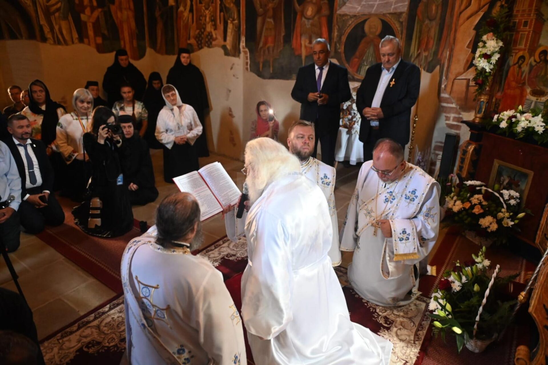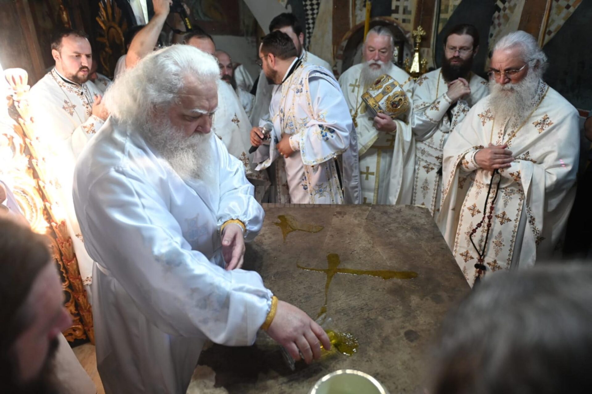 La ora 7:30, a avut loc întâmpinarea ierarhului, după care a urmat slujba de resfințire, care a durat o oră, în intervalul 8:00-9:00, după care s-a săvârșit, pe scena special amenajată în curtea mănăstirii, Sfânta Liturghie Arhierească. Fiecare credincios a avut posibilitatea de a intra în Sfântul Altar pentru a se închina, după cum este tradiția după sfințirea unei biserici.