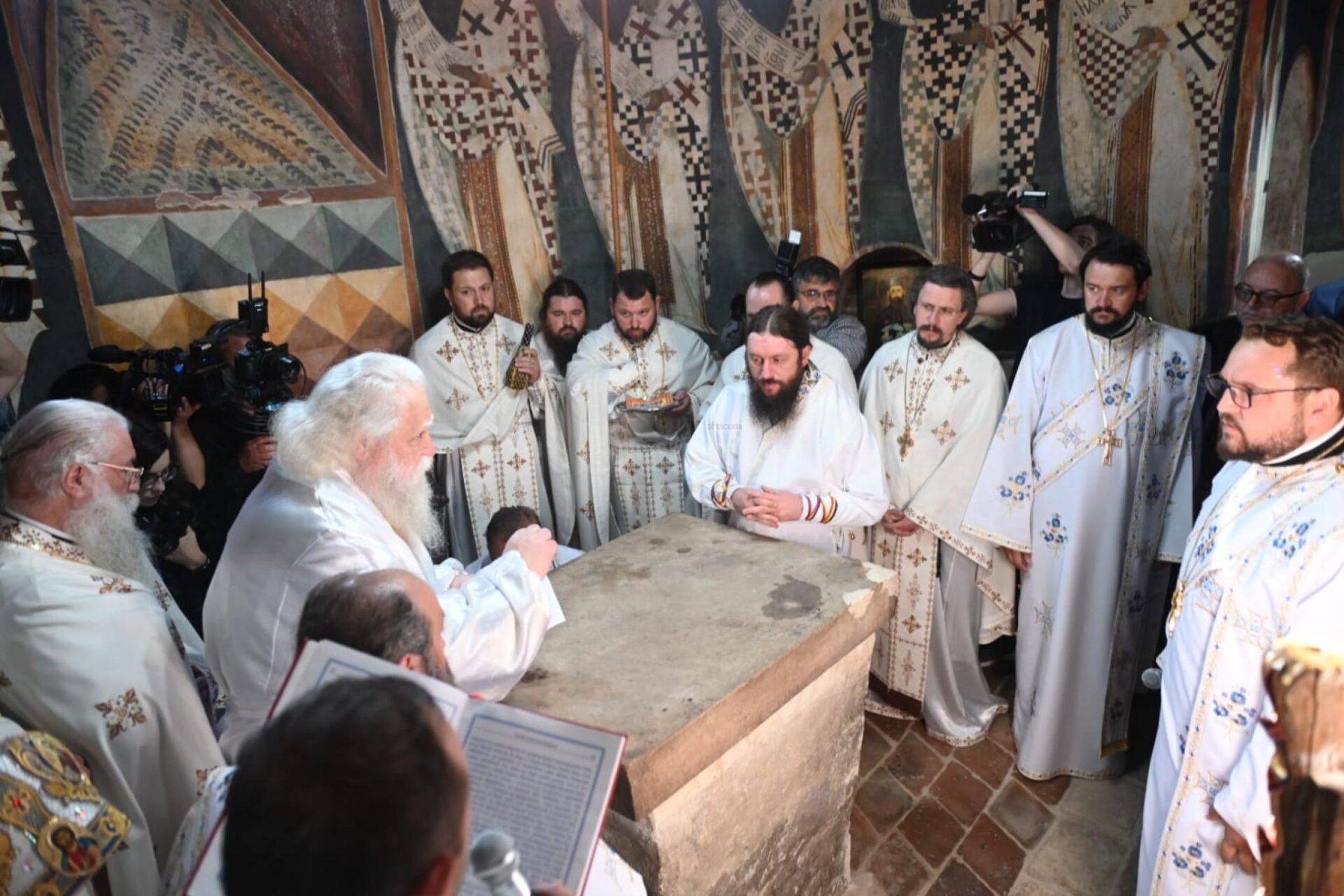 Resfințirea a fost săvârșită de Înaltpreasfințitul Părinte Calinic, Arhiepiscop al Sucevei și Rădăuților, împreună cu Preasfințitul Părinte Episcop-vicar Damaschin Dorneanul, Arhimandritul Melchisedec Velnic, starețul Mănăstirii Putnași exarh al Arhiepiscopiei Sucevei și Rădăuților, alături de un sobor de preoți și diaconi.