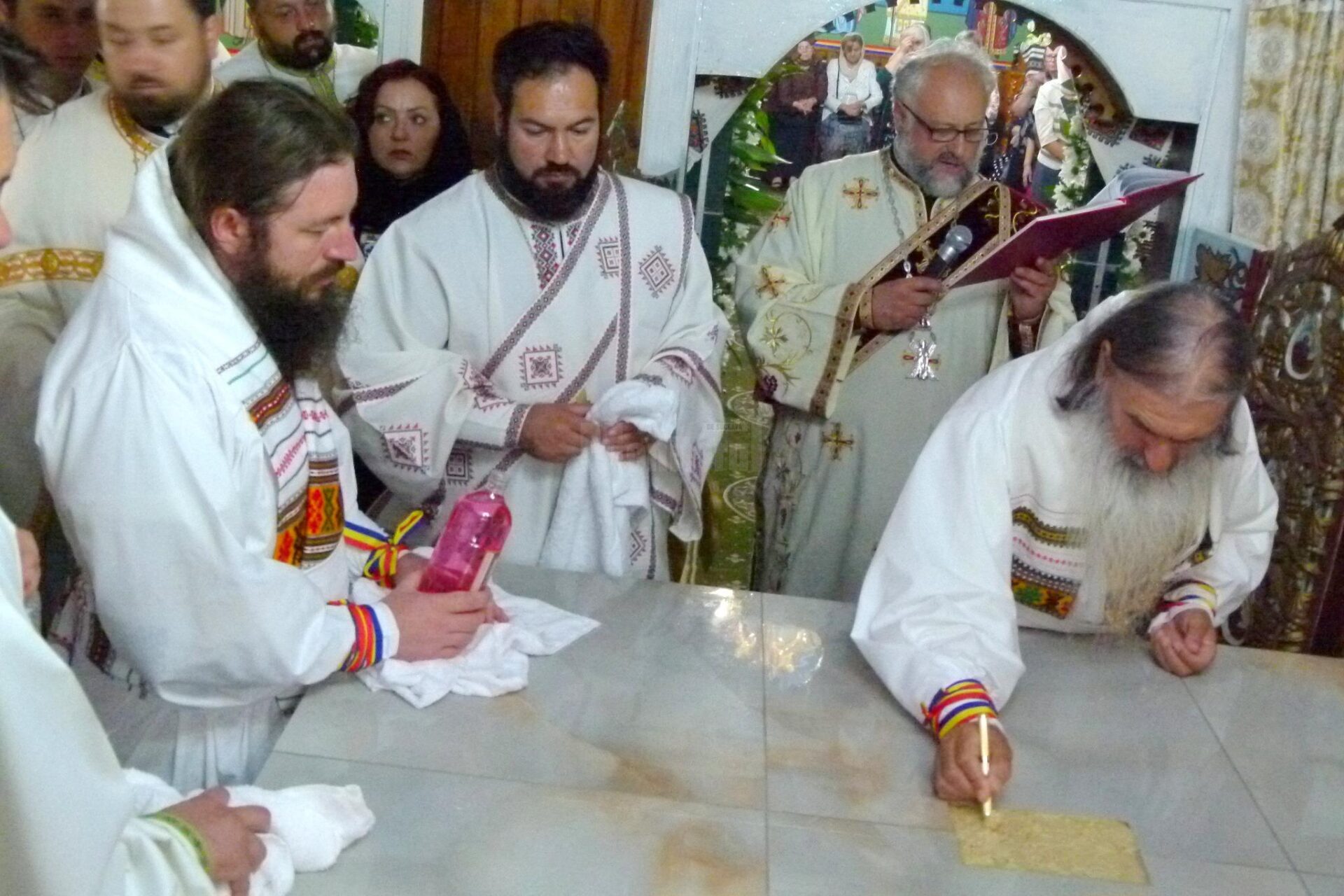 Slujba de sfințire a fost oficiată de Înaltpreasfințitul Părinte Teodosie, Arhiepiscopul Tomisului, împreună cu Preasfințitul Părinte Damaschin Dorneanul, Episcop-vicar al Arhiepiscopiei Sucevei și Rădăuților, împreună cu un sobor impresionant de preoți și diaconi. Răspunsurile liturgice au fost date de membri ai Coralei „Armonia” din Constanța. După tradiție, pe tot parcursul slujbei credincioșii, atât bărbați, cât și femei, au trecut prin Sfântul Altar și s-au închinat.