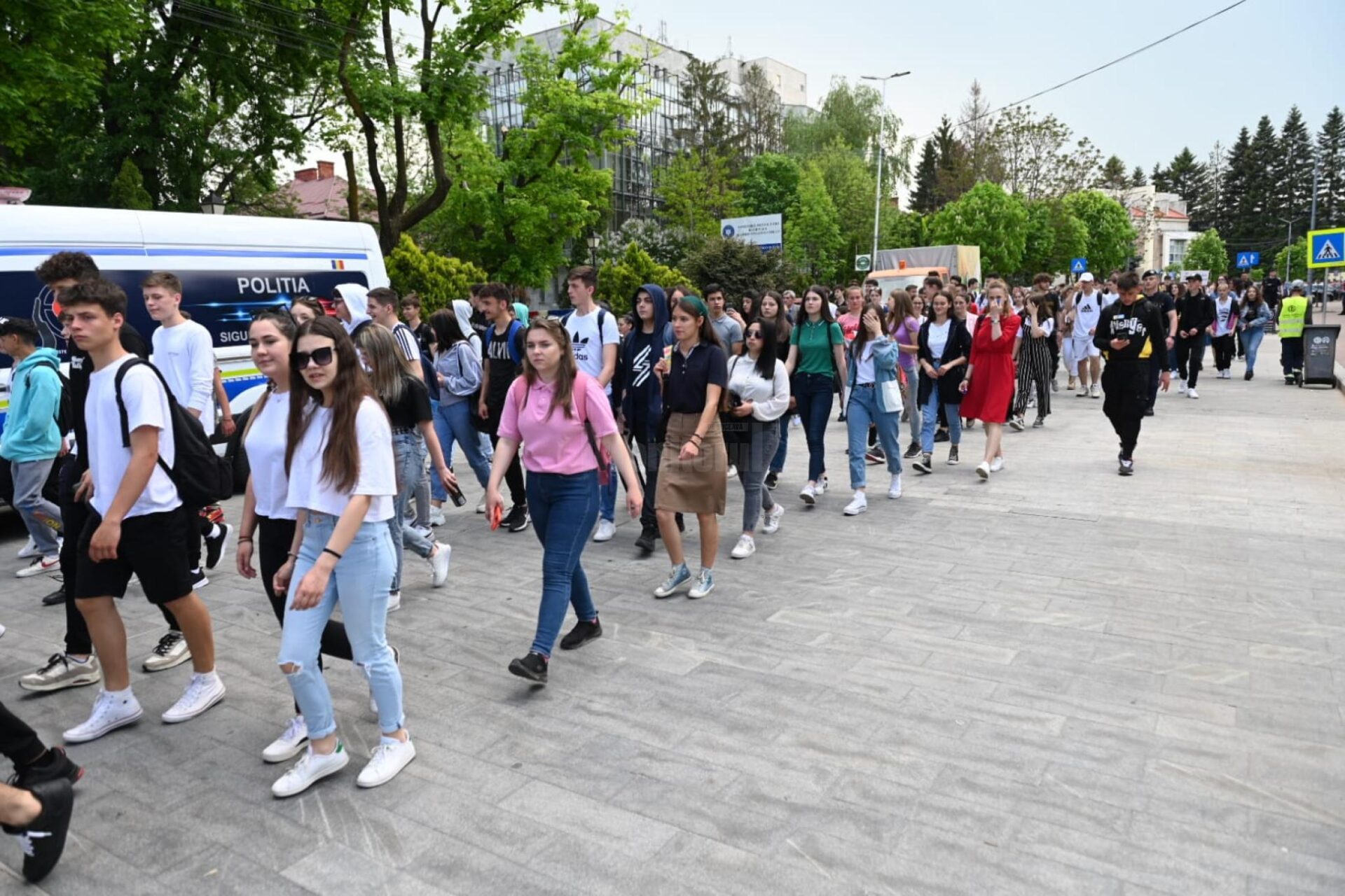 Sute de elevi, profesori, voluntari au participat vineri, 13 mai, la un marș antiviolență și la o acțiune de tip Flash Mob, la care s-au implicat și reprezentați ai Palatului Copiilor Suceava. Participanții au venit la marș „înarmați” cu pancarte, pe care erau scrise diferite mesaje: „Alcoolul și drogul nu te fac mare!”, „Violența este arma celor slabi”, „Fii inteligent, nu fi violent”, „Respectă viața!”, „Violența este replica incultului”, „Drogurile și alcoolul distrug inocența și viața!”, „Acordă-ne și nouă prioritate!”.
