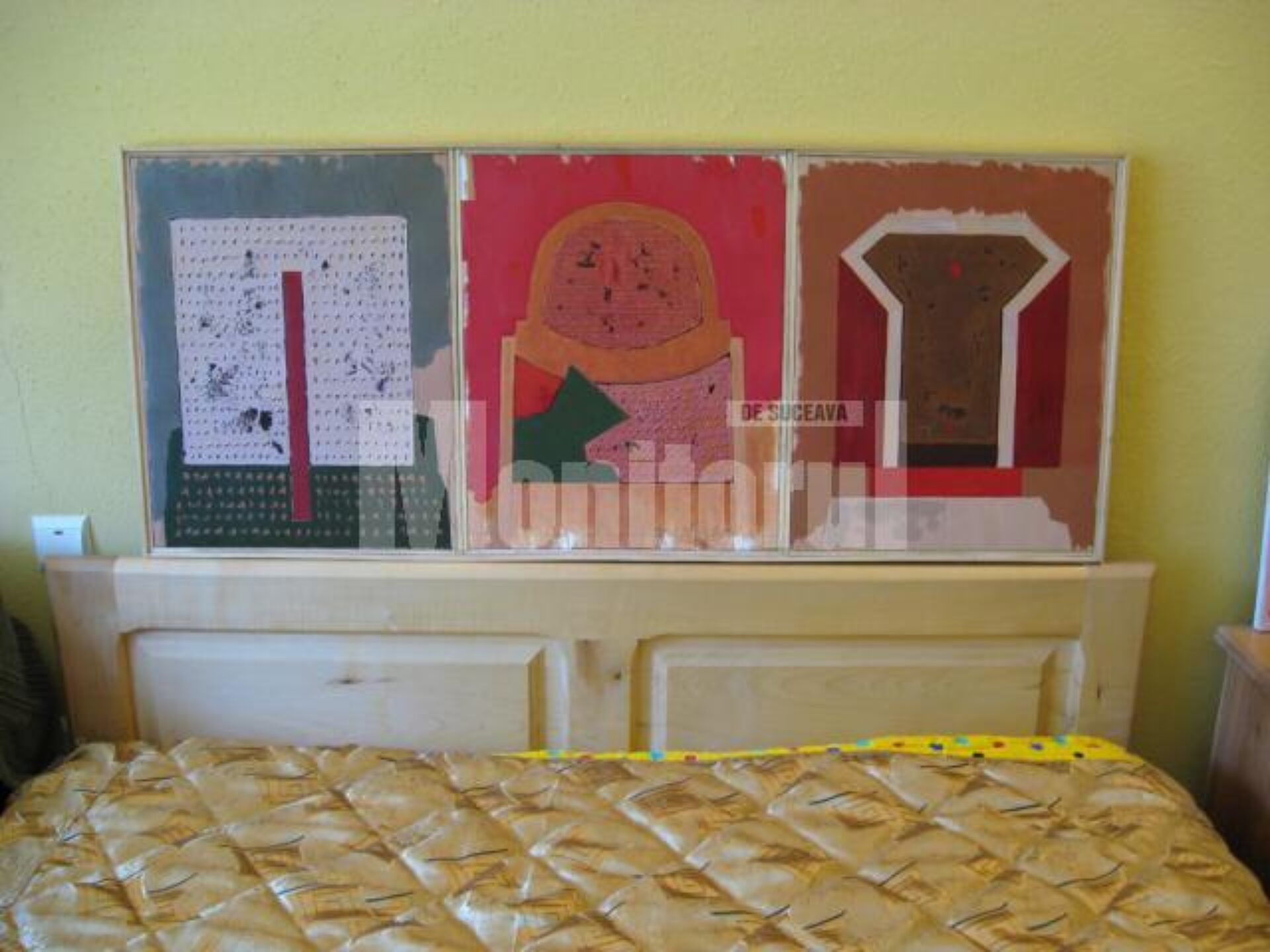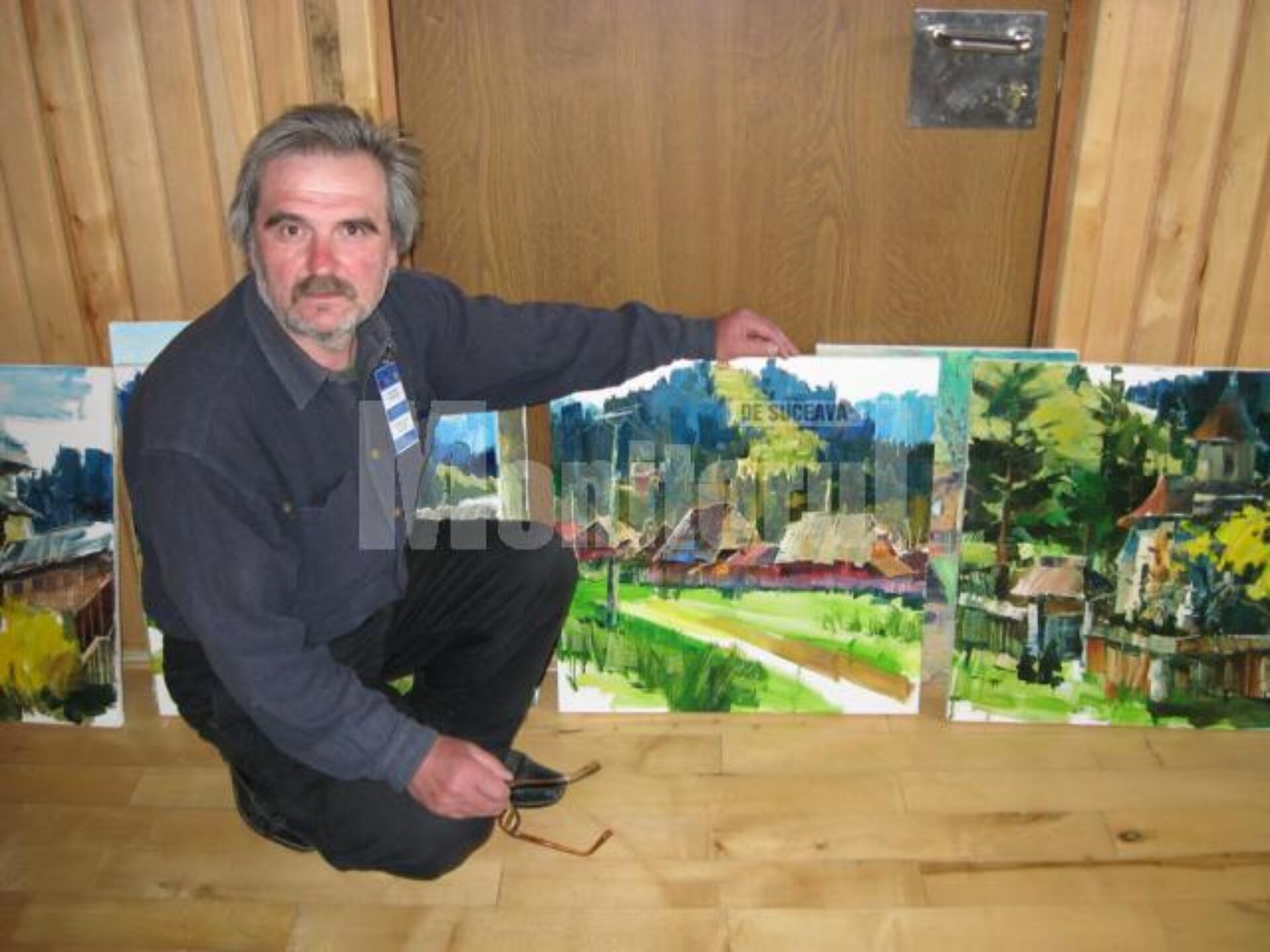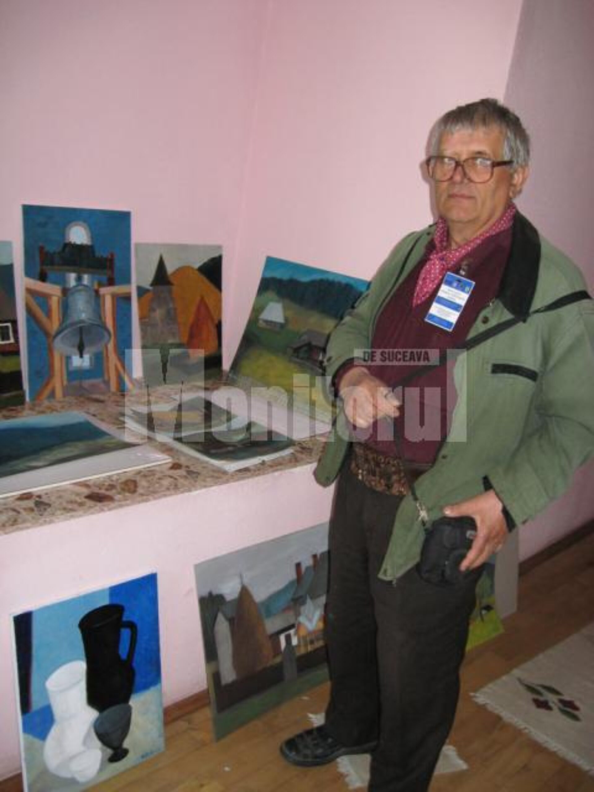 Odată cu o lucrare-triptic, realizată în culori de ulei, ne-a arătat o serie de schițe cu case și acareturi cu specific bucovinean, pe care și-a propus să le “exploateze” plastic, ceva mai târziu, în propriul său atelier.