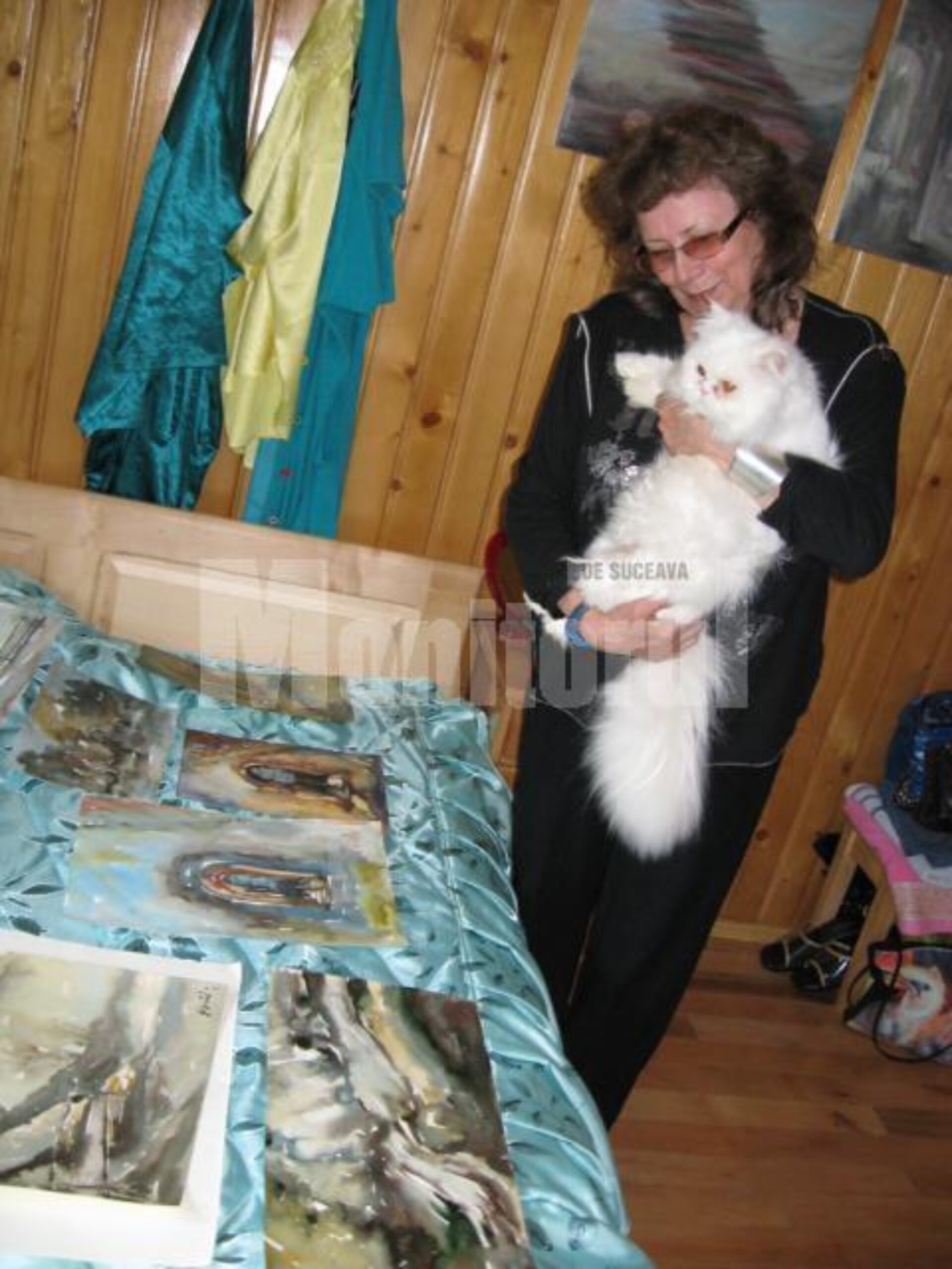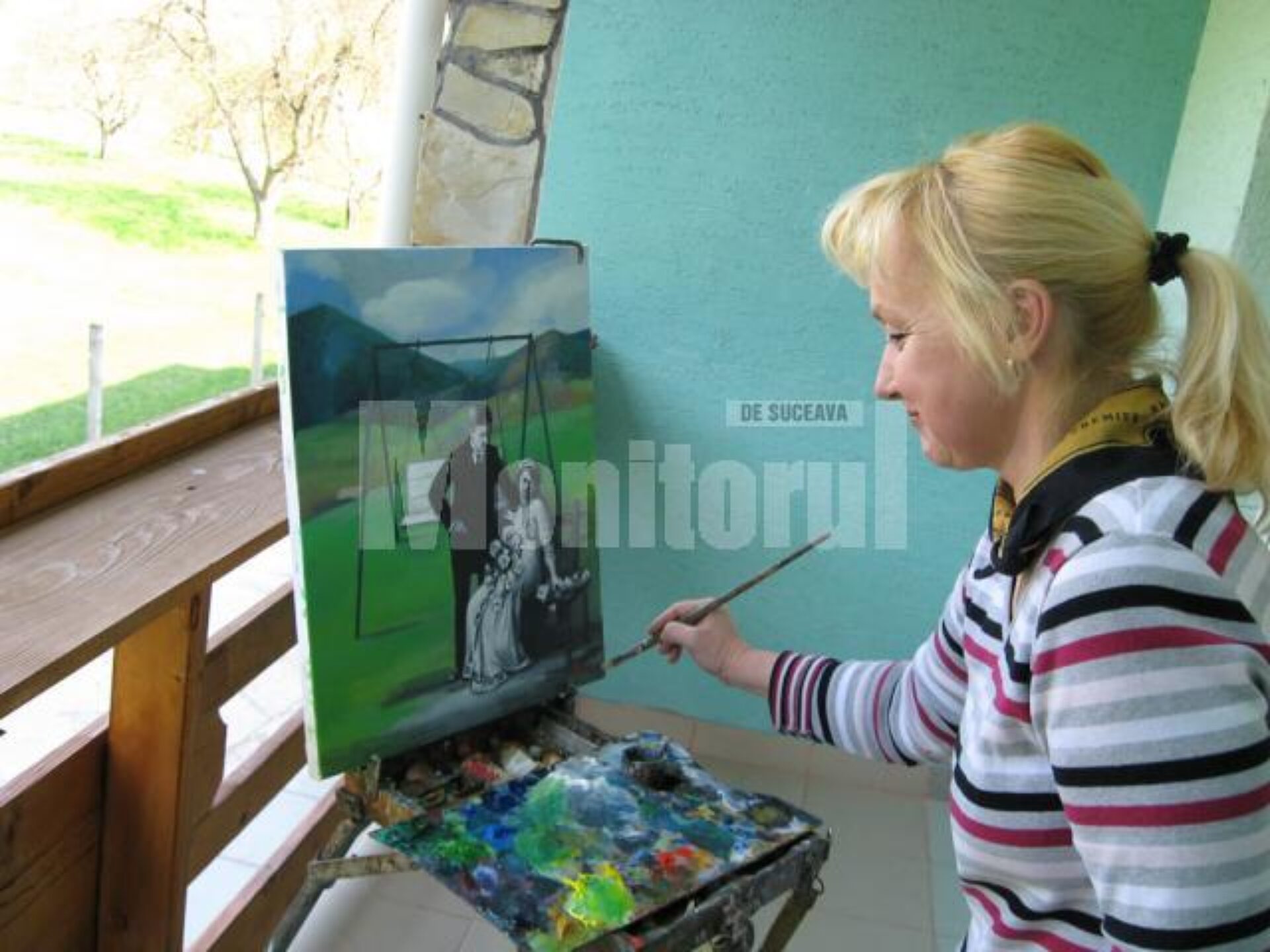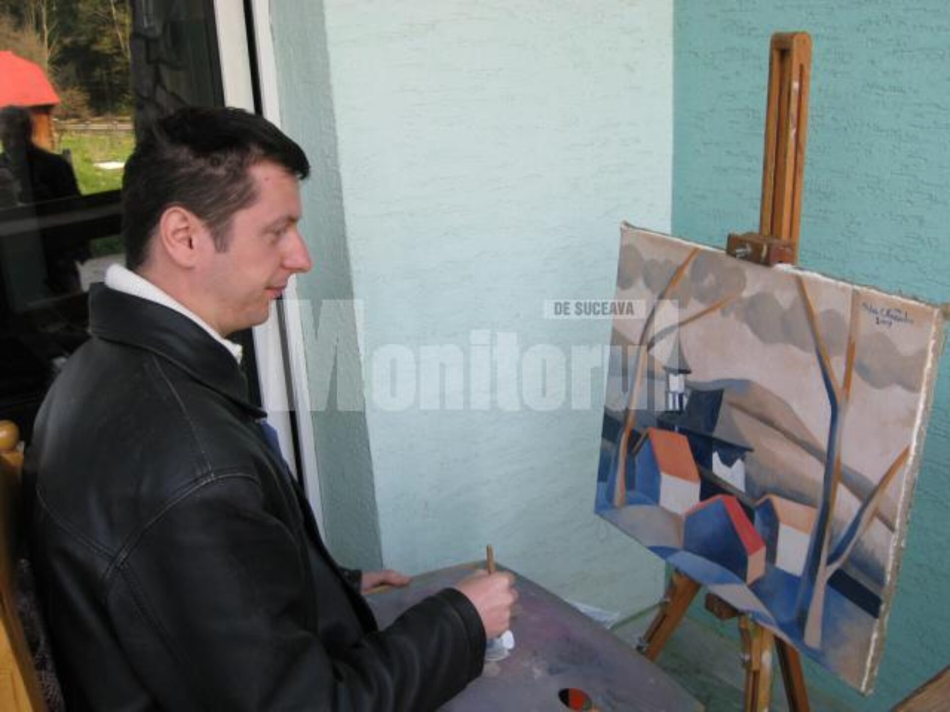 Avea pe șevalet o lucrare în care a creat un arc peste timp, suprapunând două personaje (un cuplu în haine de epocă, realizat după o veche carte poștală din perioada Bucovinei habsburgice, pe care scria, în limba germană, “Salutări din Sucevița”) peste peisajul pe care-l vedea din balconul camerei.