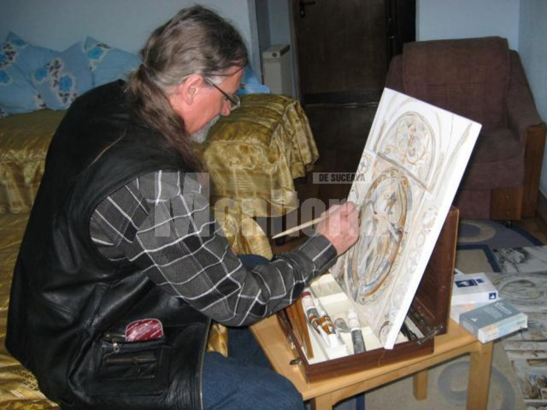 Și dacă pe maestrul Ion Grigore l-am surprins pictând în balconul camerei sale de la parter, primul artist căruia i-am călcat pragul a fost rădăuțeanul Traian Postolache, care, rămas fidel motivelor simbolice, dar inspirat de pictura murală a Suceviței, construia complicate compoziții renascentiste cu patină de frescă.