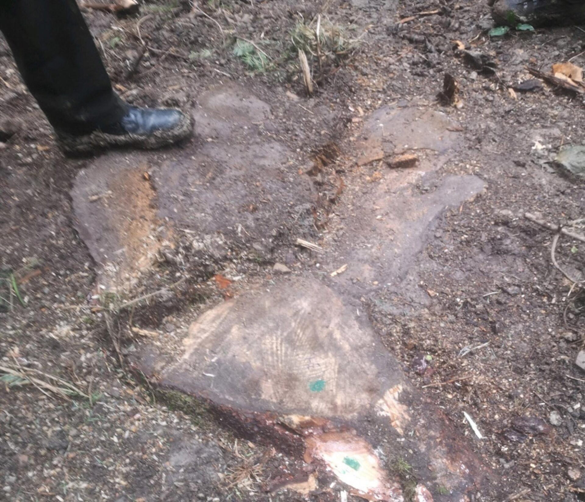 – un număr de 36 cioate provenite de la arbori tăiați ilegal, majoritatea dezrădăcinate, acoperite cu pământ, observându-se urme ale unui utilaj cu șenile și lamă, care a fost folosit pentru smulgerea arborilor și nivelarea solului în acele porțiuni;