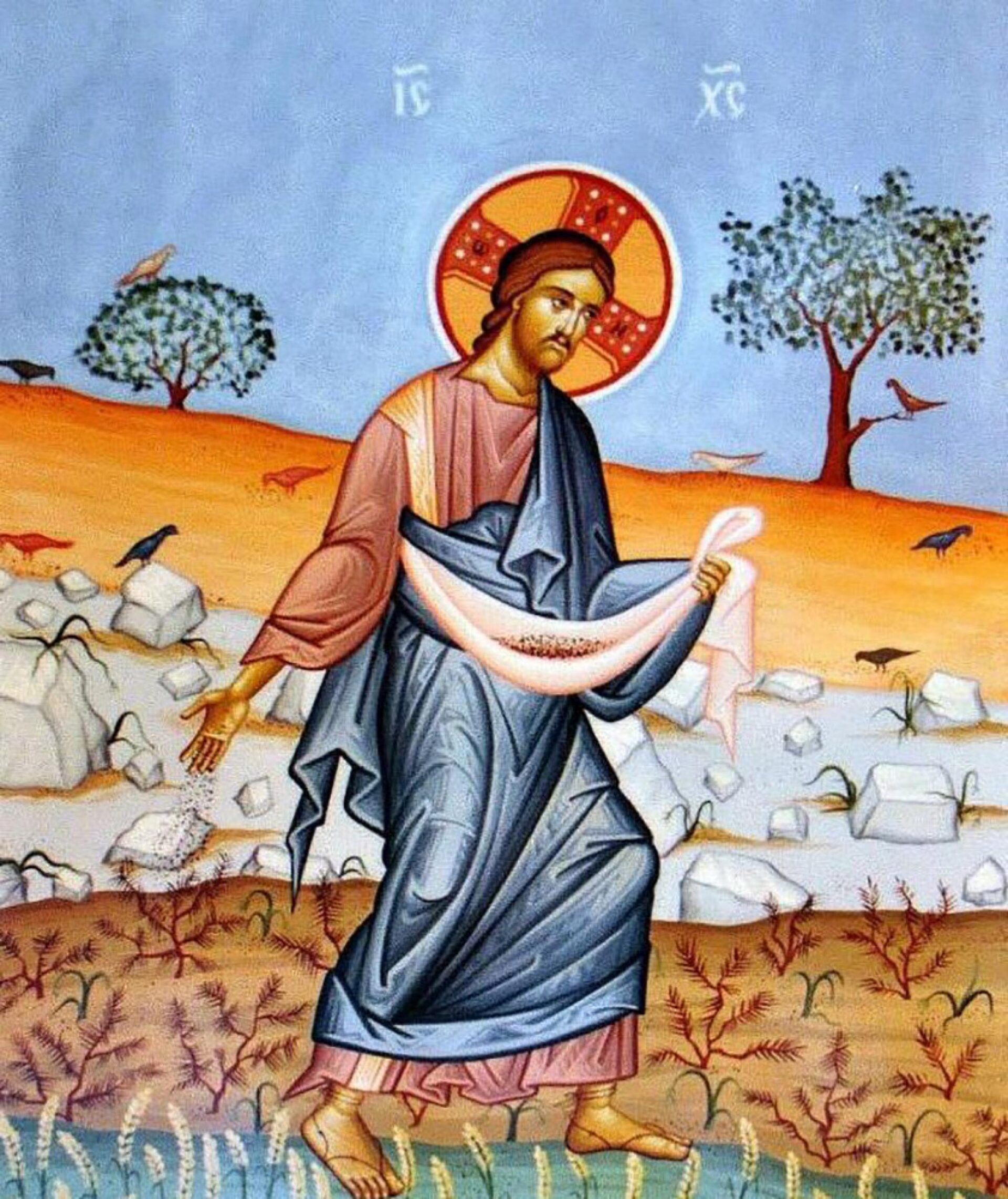 „În vremea aceea, fiind Iisus singur, au venit ucenicii Lui și, împreună cu cei doisprezece, Îl întrebau despre pilda semănătorului. Și le-a răspuns: Vouă vă este dat să cunoașteți tainele Împărăției lui Dumnezeu, dar pentru cei de afară totul se face în pilde, ca, uitându-se, să nu vadă și, auzind, să nu înțeleagă, ca nu cumva să se întoarcă și să fie iertați. Și le-a zis: Nu pricepeți pilda aceasta? Dar cum veți înțelege toate pildele? Semănătorul seamănă cuvântul. Cele de lângă drum sunt aceia în care se seamănă cuvântul și, când îl aud, îndată vine Satana și ia cuvântul cel semănat în inimile lor. Cele semănate pe loc pietros sunt aceia care, când aud cuvântul, îl primesc îndată cu bucurie, dar n-au rădăcină în ei, ci țin până la un timp; apoi, când se întâmplă strâmtorare sau prigoană pentru cuvânt, îndată se smintesc. Și cele semănate între spini sunt cei ce ascultă cuvântul, dar grijile veacului și înșelăciunea bogăției și poftele după celelalte pătrunzând în ei, înăbușă cuvântul și îl fac neroditor. Iar cele semănate pe pământul cel bun sunt cei ce aud cuvântul și-l primesc și aduc roade: unul treizeci, altul șaizeci și altul o sută. Și le zicea: Se aduce oare făclia ca să fie pusă sub obroc sau sub pat? Oare nu ca să fie pusă în sfeșnic? Căci nu e nimic ascuns ca să nu se dea pe față; nici nu a fost ceva tăinuit decât spre a fi arătat. Cine are urechi de auzit, să audă!” (Marcu 4, 10–23)