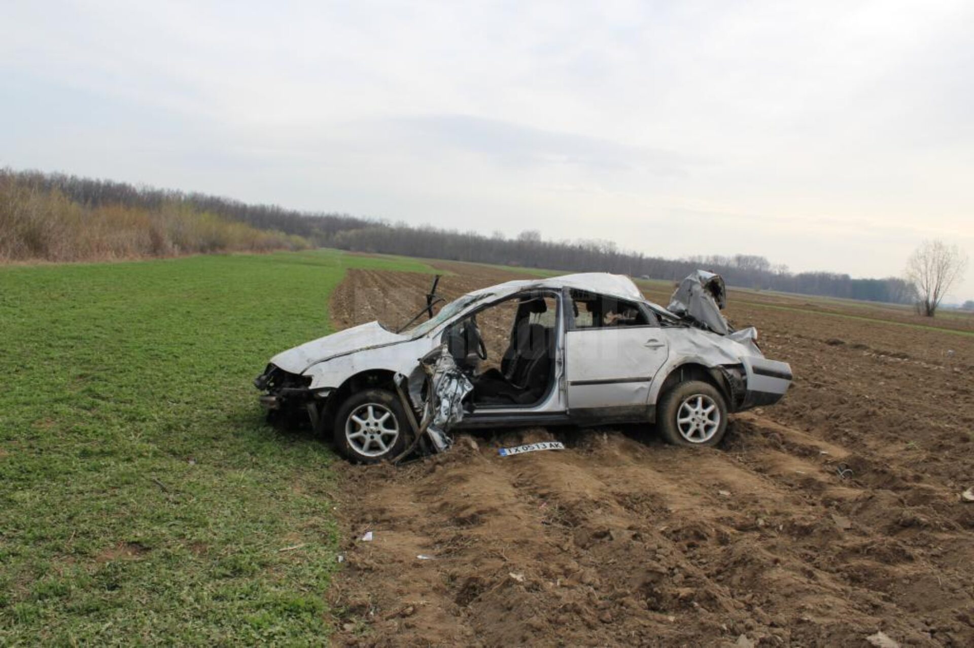 Polițiștii au plecat în urmărirea autoturismului aflat la peste 500 metri în față, iar într-o curbă, pe fondul vitezei, conducătorul auto a pierdut controlul volanului și s-a răsturnat într-un șanț.