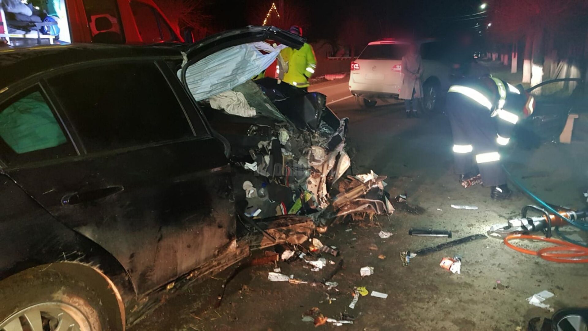 Tânără ajunsă în stare gravă la spital, după ce mașina în care se afla s-a izbit violent de un cap de pod
