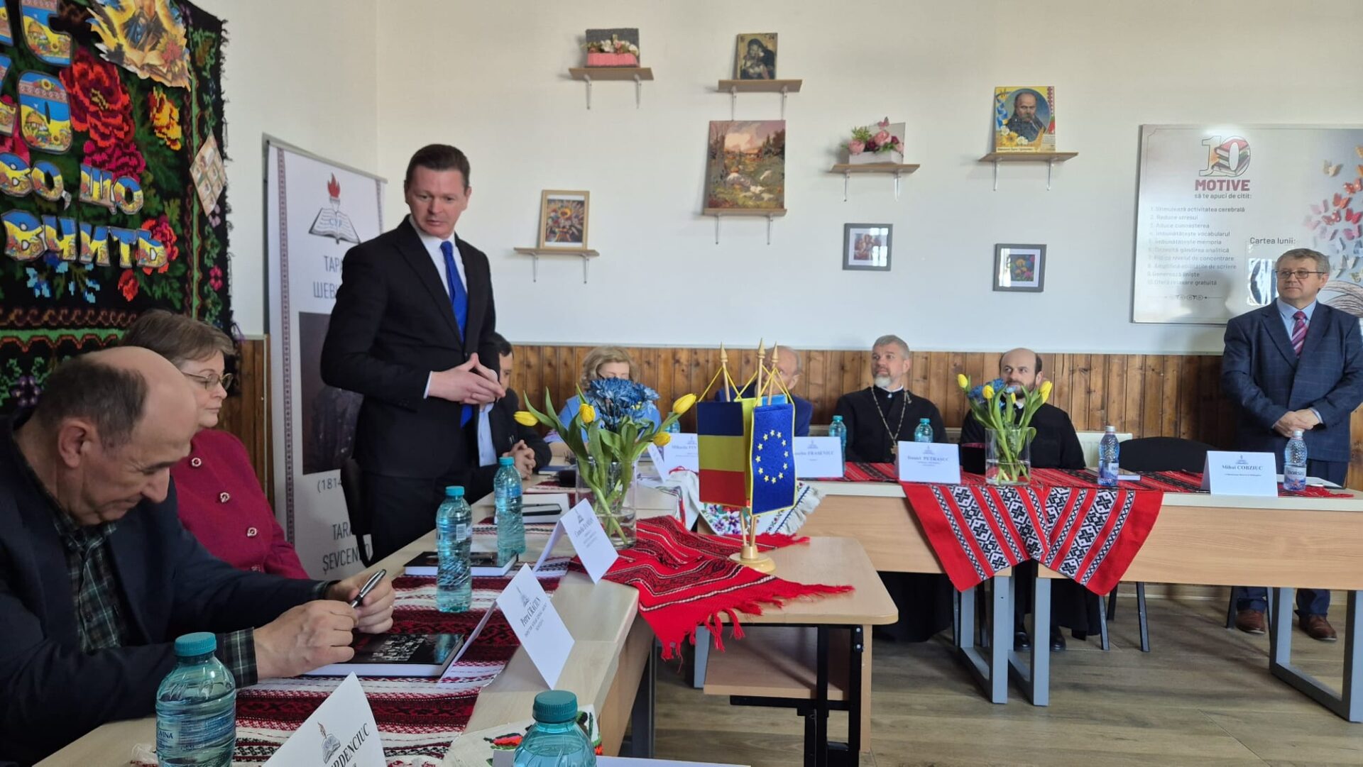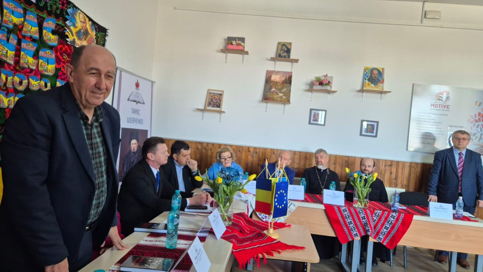 Programul a continuat cu masa rotundă intitulată „Taras Șevcenko – marele cobzar al poporului ucrainean”. Activitatea a debutat cu intonarea imnurilor de stat ale României și Ucrainei, urmată de o rugăciune de binecuvântare rostită de preotul Daniel Petrașuc, Parohia Bălcăuți, și preotul Cârstean Ionuț, Parohia Gropeni. În cadrul evenimentului au luat cuvântul reprezentanți ai autorităților județene și locale, care și-au exprimat respectul și aprecierea pentru cultura ucraineană: Bogdan George Păstrăv și Camelia Damian, subprefecții județului Suceava, Petru Crăciun, inspectorul școlar general adjunct în cadrul Inspectoratului Școlar Județean Suceava, Ilie Sauciuc – președintele Filialei UUR Suceava, Petru Iulian Chideșa – primarul comunei Bălcăuți, Adrian Popoiu – primarul orașului Siret, Mihaela Pintrijel – directorul Școlii Gimnaziale Bălcăuți și Daniel Serdenciuc – membru al Consiliului UUR și președinte al Filialei UUR Iași. Sesiune de comunicări științifice a fost susținută de specialiști din domeniul educației: prof. Eusebie Fraseniuc, prof. Anca Știubianu, Școala Gimnazială Negostina, prof. Mirabela Carpiac, Scoala Gimnazială ”Petru Mușat” Siret, prof. Delia Martineac, Colegiul Național ”Mihai Eminescu” Suceava și prof. Valentina Farus, Colegiul Vocațional Pedagogic ”Osyp Makovyi” Cernăuți, Ucraina.