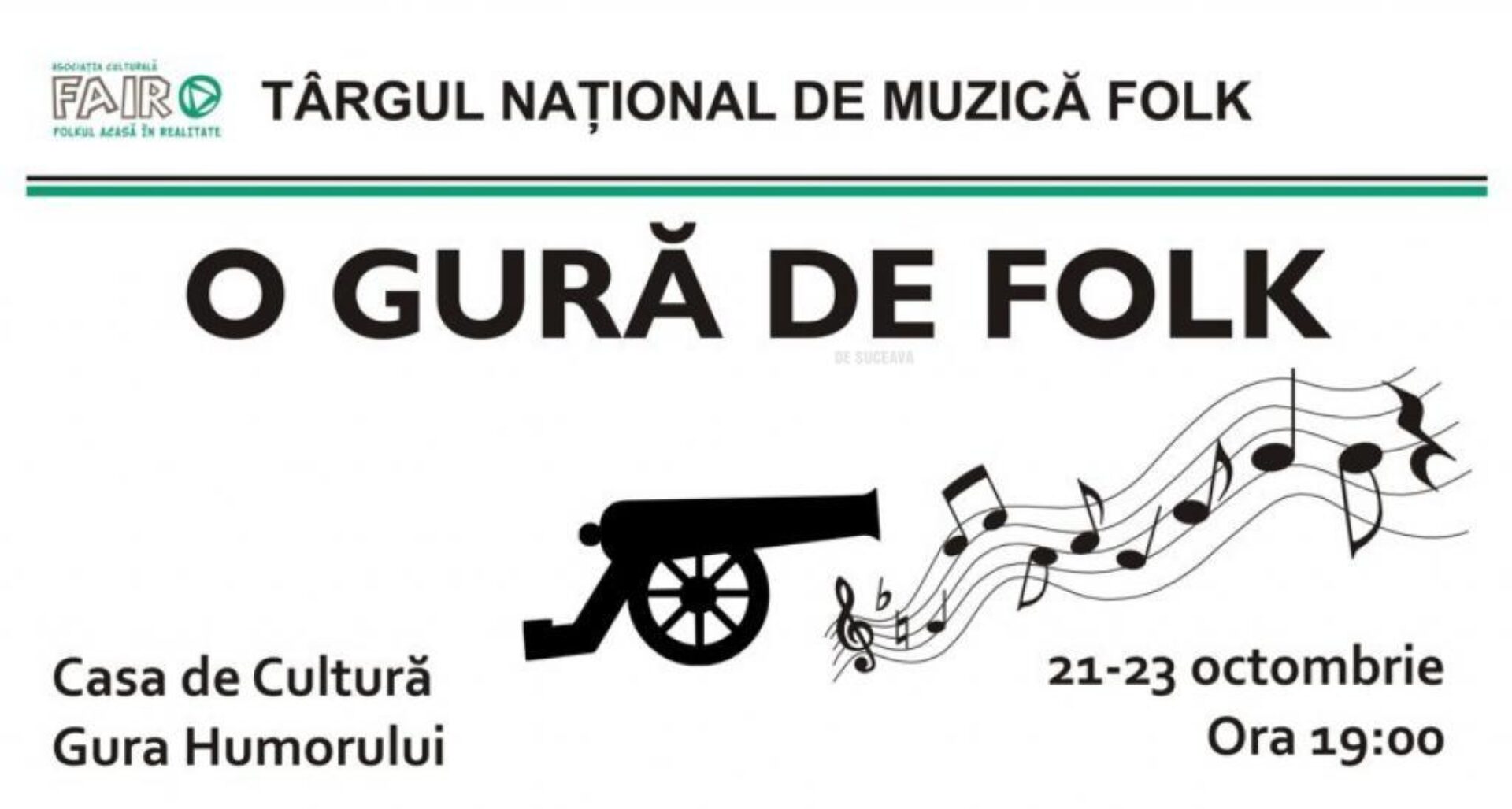 Asociația „Folkul Acasă În Realitate” vă invită la Gura Humorului la „O gură de folk”, primul târg de muzică folk din România, care se va desfășura în perioada 21-23 octombrie 2016.