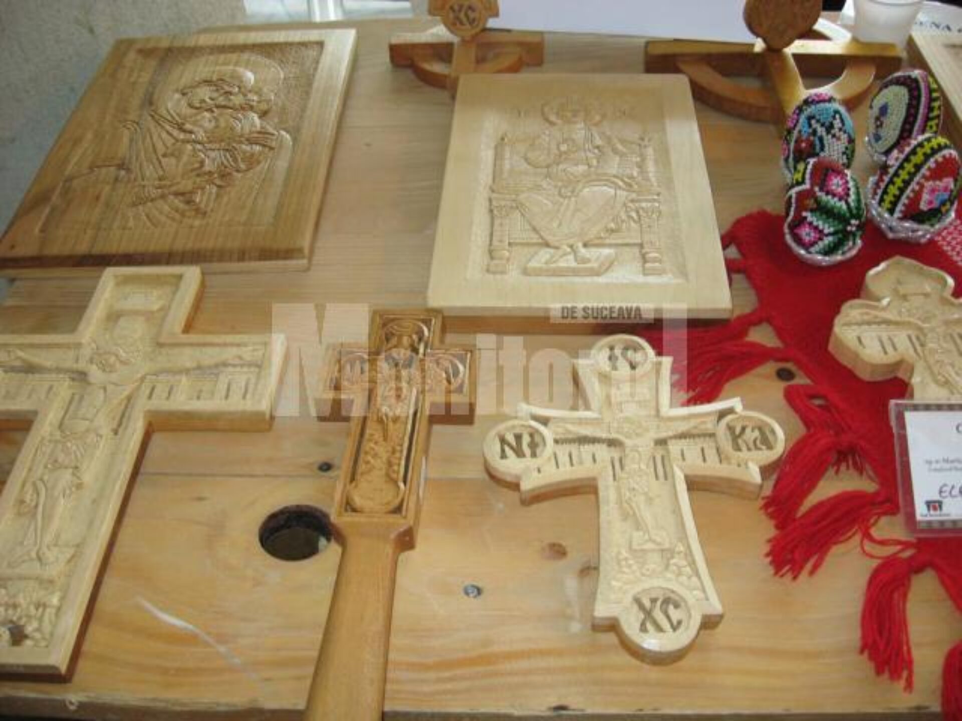 Puteau fi văzute împletituri din nuiele (coșuri pascale), ceramică, piese cioplite din lemn (de la lingurile și căușele executate de Daniel și Petru Târlă din Doroteea, la cruciulițele și icoanele sculptate cu dălți minuscule de Nicolae Gheorghian), dar și podoabe din mărgele, ca cele ale Elenei Gheorgian, sau piese artizanale realizate din corn de cerb (sfeșnice, sărărițe, orgenițe pentru praf de pușcă), pocale din corn de vită, sau pălării de vânătoare cu ornamente meșteșugite realizate din păr de porc mistreț și pene de fazan, aduse și prezentate de meșterul humorean Gheorghe Zofotă.