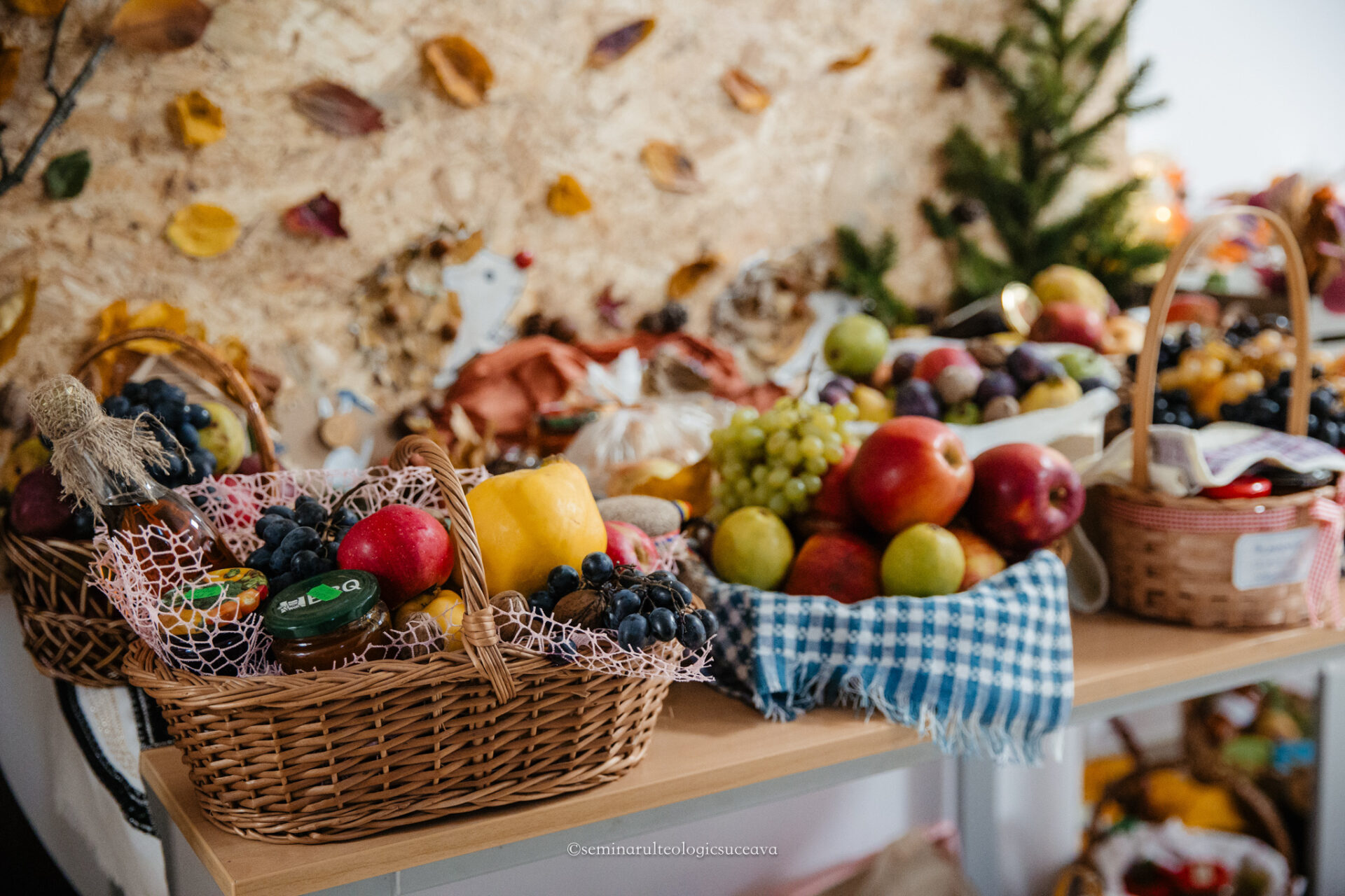 Parterul școlii noastre a fost împodobit cu multă dragoste și dedicare de către învățători și profesori, părinți, bunici și copii mari și mici. S-au așezat laolaltă roadele muncii lor – ale copiilor – și ale părinților și bunicilor deopotrivă, iar fiecare coș sau lădiță frumos împodobită a spus o poveste despre generozitate și iubire.
