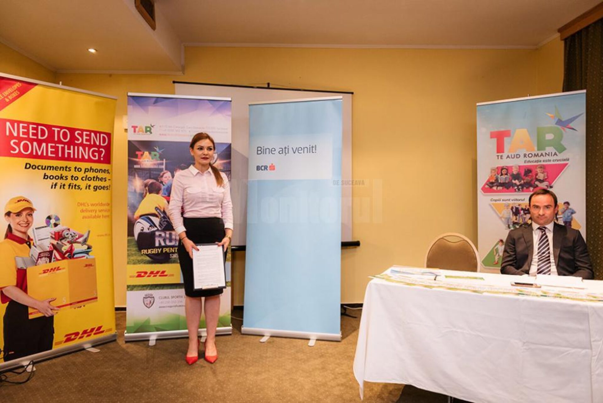 Prezentă la eveniment, Daniela Ștefănescu, psiholog TAR, s-a adresat elevilor humoreni și le-a spus: „bursa pe care o primiți de-a lungul unui an nu înseamnă numai suport financiar, ea vă oferă printr-un program de consiliere de grup oportunitatea înțelegerii motivației, a personalității voastre, a dinamicii relațiilor interpersonale în cadrul echipei, a felului în care puteți să vă întăriți punctele tari și să transformați puncte slabe în puncte tari, și aici mă refer inclusiv la controlul emoțiilor, al anxietății, controlul gândirii negative, dezvoltarea gândirii pozitive, al încrederii în sine, dezvoltarea combativității, controlul agresivității, al stresului, dezvoltarea comunicării cu alții și cu sine, precum și a altor dimensiuni ale participării în activitatea sportivă, menite să îmbunătățească execuția, să ridice calitatea sportului practicat și a măiestriei care să vă ducă pe culmile succesului.” Tot psihologul a adăugat: „Ce poate fi mai motivant decât să înțelegi că în viață întâlnim mai multe uși. Fiecare ușă duce către un drum. Anumite uși suntem inspirați să le deschidem. Pe altele le deschidem doar dacă vrem, pentru că ni se dă dreptul să alegem. Alegeți înțelept și munciți pentru visul vostru!” La rândul său, Daniel Kearvell, Managing Director DHL Express Romania, i-a îndemnat pe elevii bursieri să “beneficiați din plin de acest program și maximizați oportunitățile pe care vi le oferă”. „Pe băieți aș dori în primul rând să îi felicit pentru intrarea în program. Pentru mine, totuși, aceasta este partea cea mai ușoară. (…) Munca începe abia de-acum. Totul este în mâinile voastre, iar noi ne dorim ca voi toți să reușiți. Provocarea voastră este să preluați ștafeta de la predecesorii voștri celebri și să faceți tot ce puteți pentru a fi mai buni ca ei și a continua tradiția rugby-ului de succes din această zonă”, a mai adăugat Daniel Kearvell.