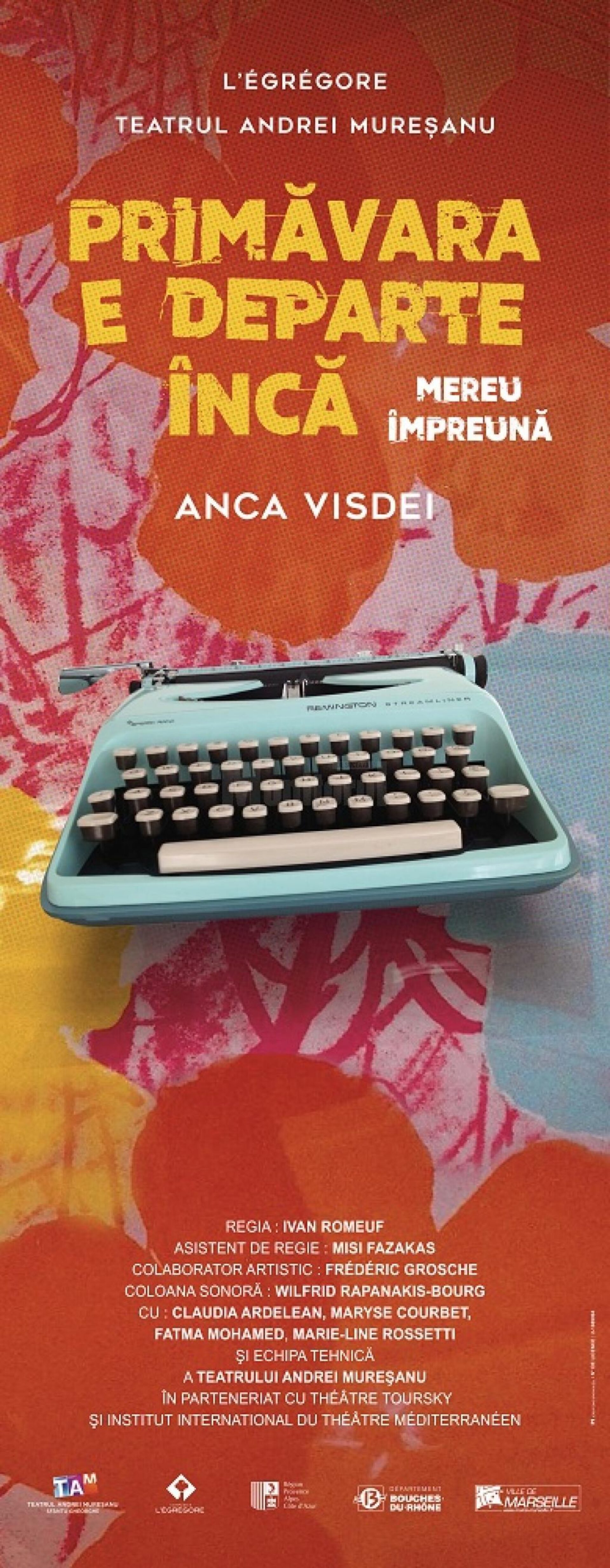 Joi, 22 septembrie, la ora 19.00, la Teatrul Municipal „Matei Vișniec” Suceava va avea loc spectacolul bilingv româno-francez „Le printemps est encoire loin. Tojours ensemble – Primăvara e departe încă. Mereu împreună” de Anca Visdei, în regia lui Ivan Romeuf, o coproductie realizată de Compania teatrală L’Egrégore din Marsilia și Teatrul „Andrei Mureșanu” din Sf. Gheorghe.