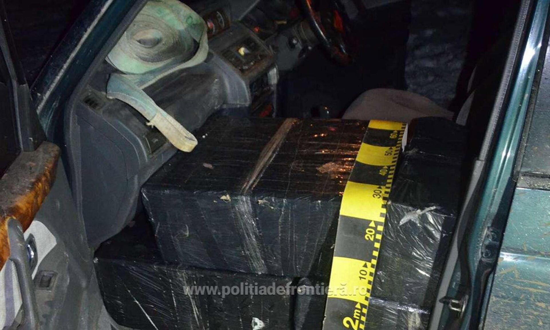 Polițiștii de frontieră de la Vicovu de Sus au efectuat, marți, 21 decembrie, un control în zona liniei de frontieră, reperând, în jurul orei 18.30, în dreptul localității Frătăuții Noi, o mașină de teren Mitsubishi în care se aflau mai multe colete cu țigări. Mașina fusese abandonată de contrabandiști cu puțin timp înainte.