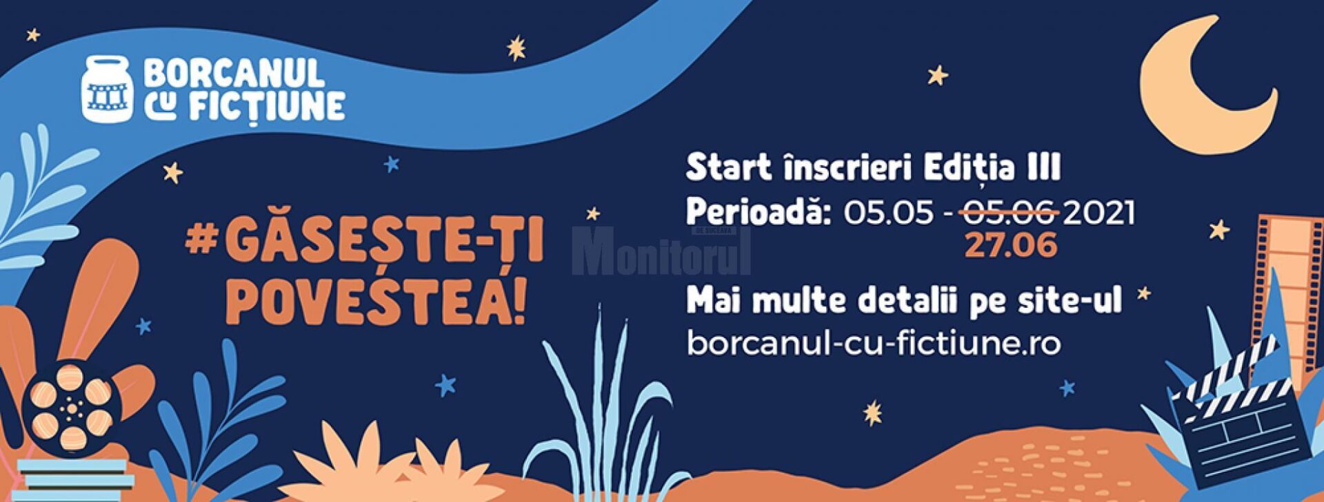 Tinerii cu vârste cuprinse între 18 și 35 de ani, pasionați de cinematografie, pot să se înscrie lacea de-a III-a ediție a taberei de creație „Borcanul cu Ficțiune”. Organizatorii taberei de creație anunță prelungirea etapei de înscriere până pe 27 iunie. Câștigătorul va beneficia de un premiu în valoare de 3.000 de euro pentru ecranizarea scenariului. „Borcanul cu Ficțiune” este o platformă de creație pentru scenarii de scurt metraj adresată tinerilor cu vârste cuprinse între 18 și 35 de ani. „Invităm pasionații de cinematografie să scrie poveștile al căror fir s-a rătăcit între adevăr și imaginație în timpul unui apus de mister peBorcanul cu Fictiune. Organizată de Asociația Echitart cu sprijinul Vestra, tabăra se va desfășura, în perioada 9 – 16 iulie 2021, sub îndrumarea actorului și regizorului român Mihai Brătilă”, anunță organizatorii.