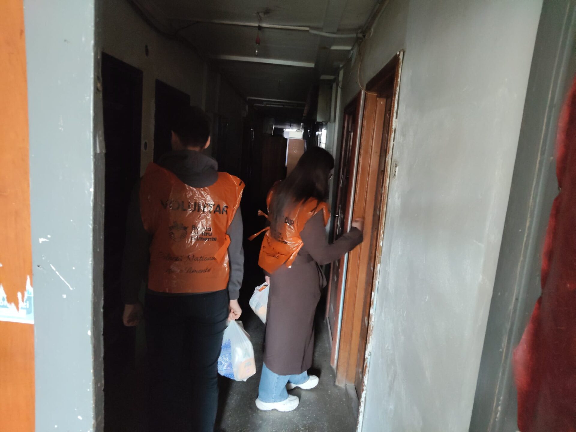 100 de pachete cu alimente au fost dăruite persoanelor nevoiașe din Suceava (de la blocul 48 din fața Colegiului Național „Mihai Eminescu” și de la blocul social de lângă Inspectoratul Școlar), precum și din Pătrăuți, Mitoc, Adâncata și Mușenița.