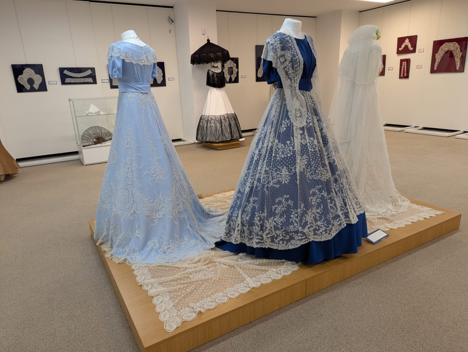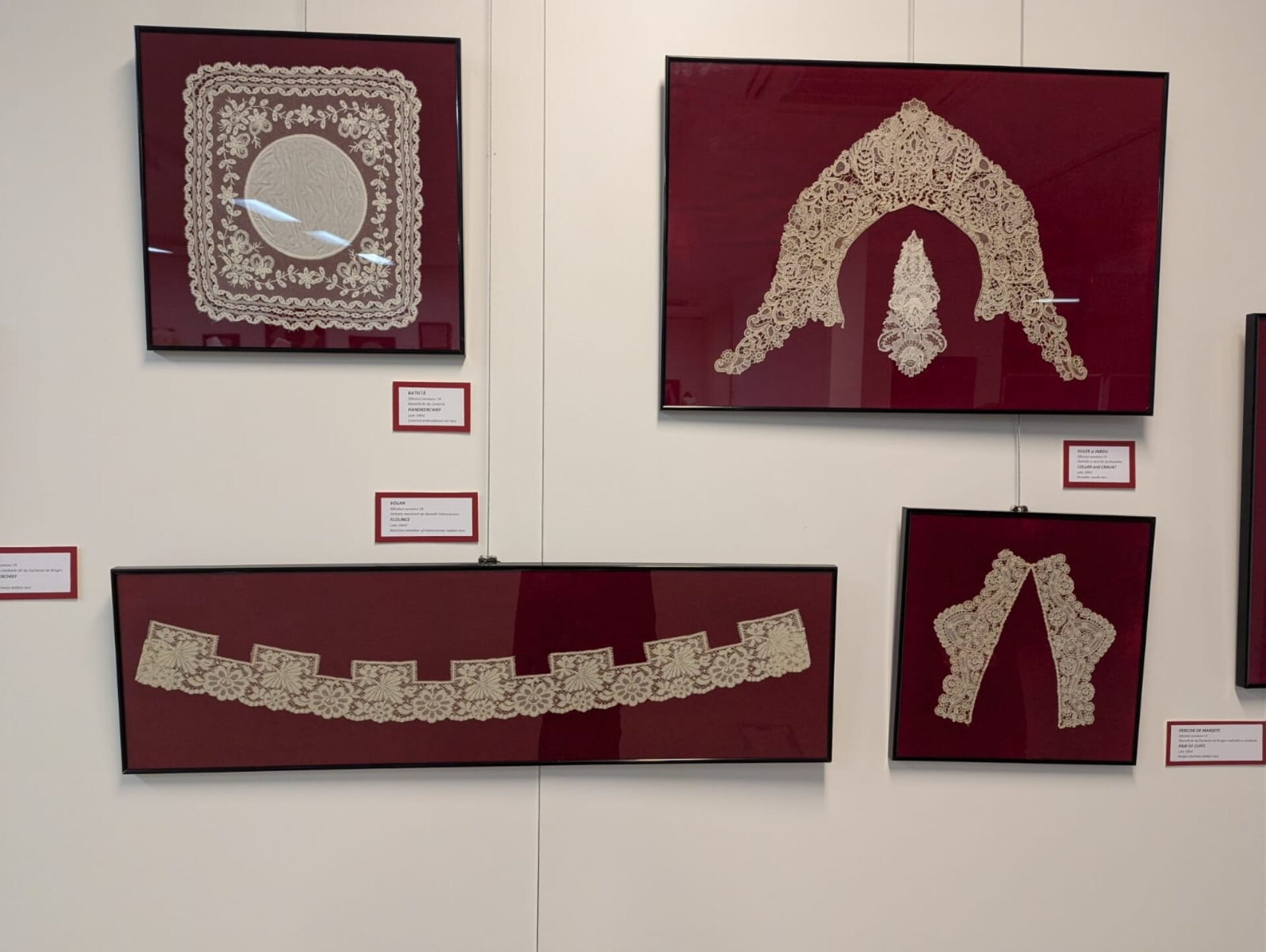 O parte dintre dantele sunt expuse liber, iar altele sunt încadrate în rame, fiecare piesă oferind vizitatorilor o dovadă a măiestriei și dedicării creatorilor din acest domeniu. Publicul poate vedea în expoziție dantele lucrate manual cu acul sau cu ciocănelele, piese realizate mecanizat, mărturii ale revoluției industriale, accesorii sofisticate: batiste, evantaie, gulere, umbrele, poșete și bijuterii.