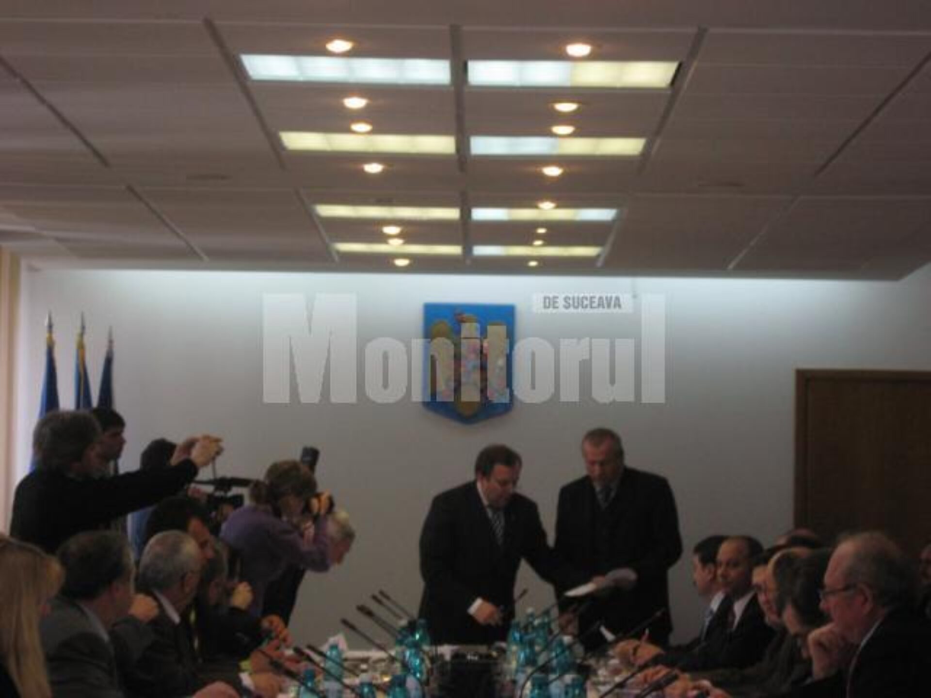 După ce a citit hotărârea de validare a mandatului de consilier județean al lui Titi Petrea, Flutur i-a strâns acestuia mâna și l-a invitat să depună jurământul.