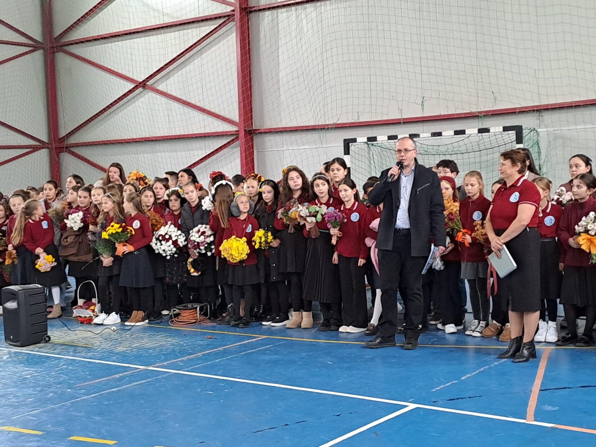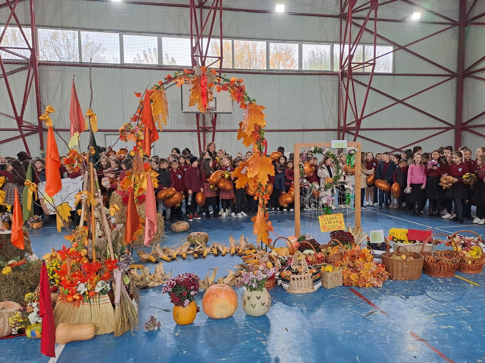 Activitatea „Toamna Rodnică” a adunat întreaga suflare a ciclului primar în sala de sport a liceului. Deși vremea nefavorabilă a impus mutarea locației din curtea școlii, acest lucru nu a știrbit cu nimic din magia momentului. În decorul festiv, copiii, asemenea unor spiriduși ai recoltei, cu coronițe din frunze și coșuri doldora, au oferit un program artistic vibrant, presărat cu jocuri pline de veselie pe ritmuri muzicale, transformând sala de sport într-un muzeu viu al toamnei.