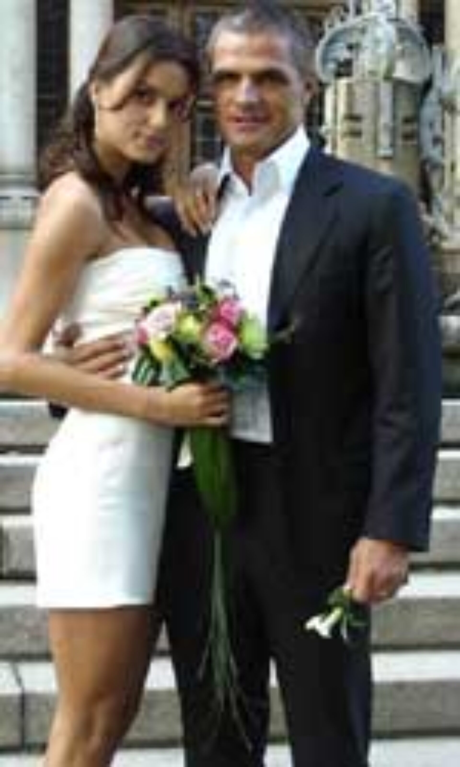 Cununia civilă a avut loc lîngă Milano în localitatea Busto Arsizio Nașii au fost Fabrizia și Alessandro Moggi – fiul lui Luciano Moggi președintele echipei de fotbal Juventus Torino. Alessandro Moggi este președintele firmei Gea World, care îl impresariază pe Adrian Mutu.