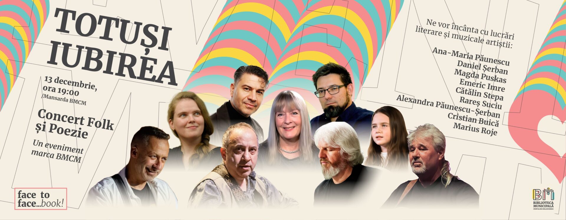 La Biblioteca Municipală Câmpulung Moldovenesc va avea loc sâmbătă, 13 decembrie 2025, la ora 19:00, un concert de muzică folk și poezie, eveniment intitulat sugestiv „Totuși iubirea”.