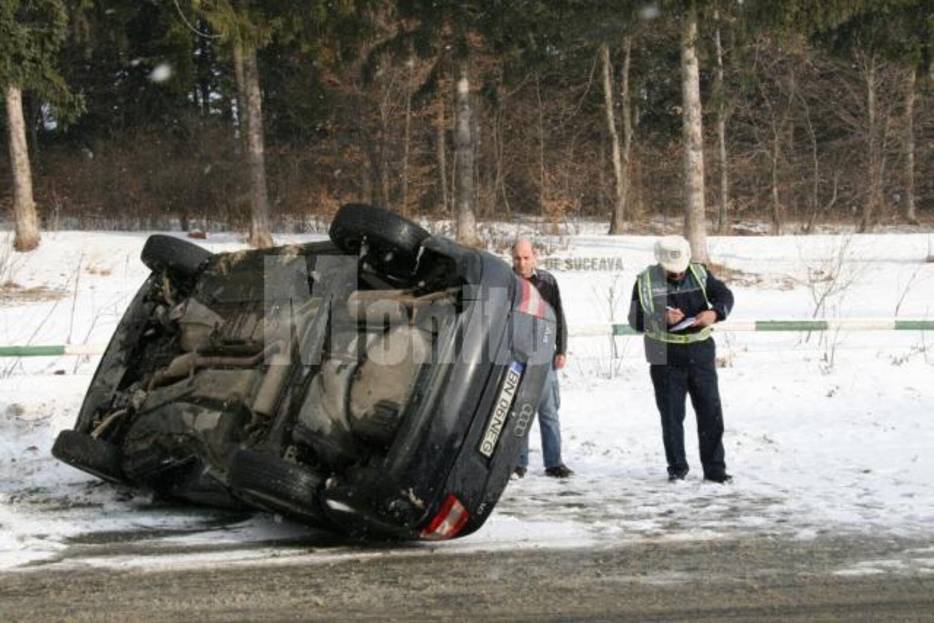 Din cauza condițiilor meteo nefavorabile, prin județ s-au produs mai multe tamponări și accidente, din fericire fără urmări tragice. Pe drumul european 576, în zona cabanei Ilișești, un autoturism marca Audi, cu număr de Bistrița Năsăud, a derapat din cauza poleiului, s-a izbit de un mal de pământ, iar apoi s-a răsturnat pe carosabil. Din fericire, nici șoferița, și nici tatăl acesteia, care se afla în dreapta, nu au suferit leziuni, scăpând doar cu o spaimă pe cinste.