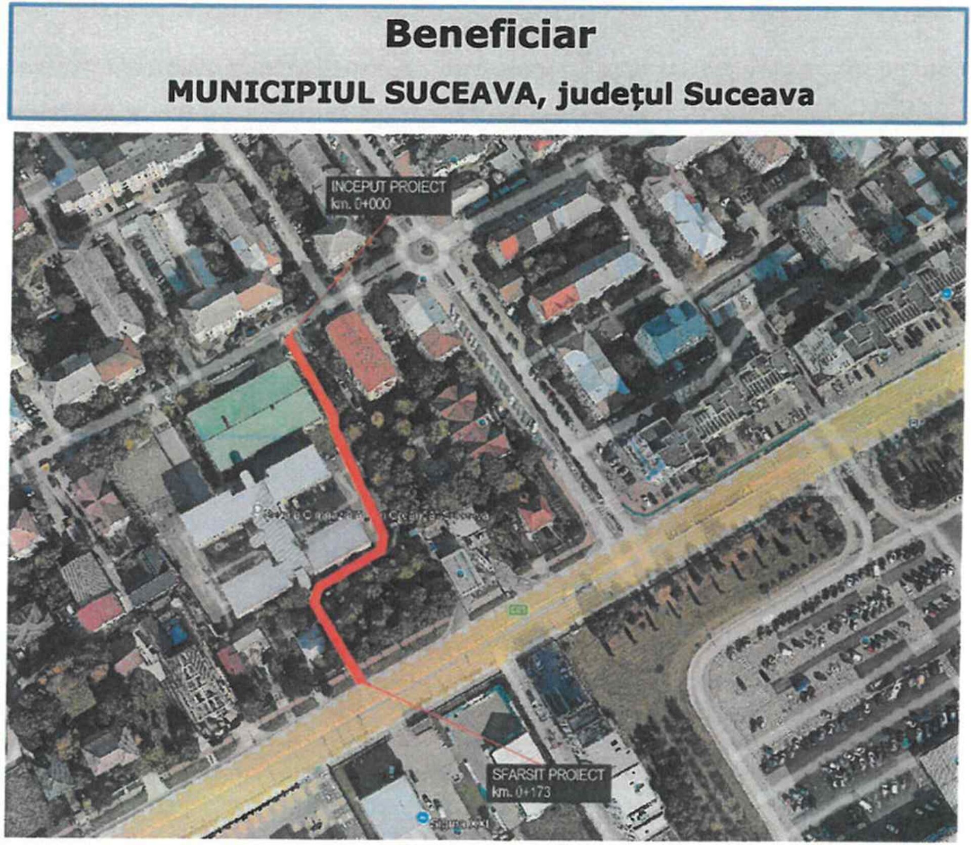Lucrările se vor executa pe două terenuri aflate în proprietatea municipiului Suceava (domeniul public), cu suprafețele de 6.117,37 mp (CF nr. 47263) și 4.059,05 mp (CF nr. 47264), ambele situate pe bulevardul Gavril Tudoraș nr. 13.