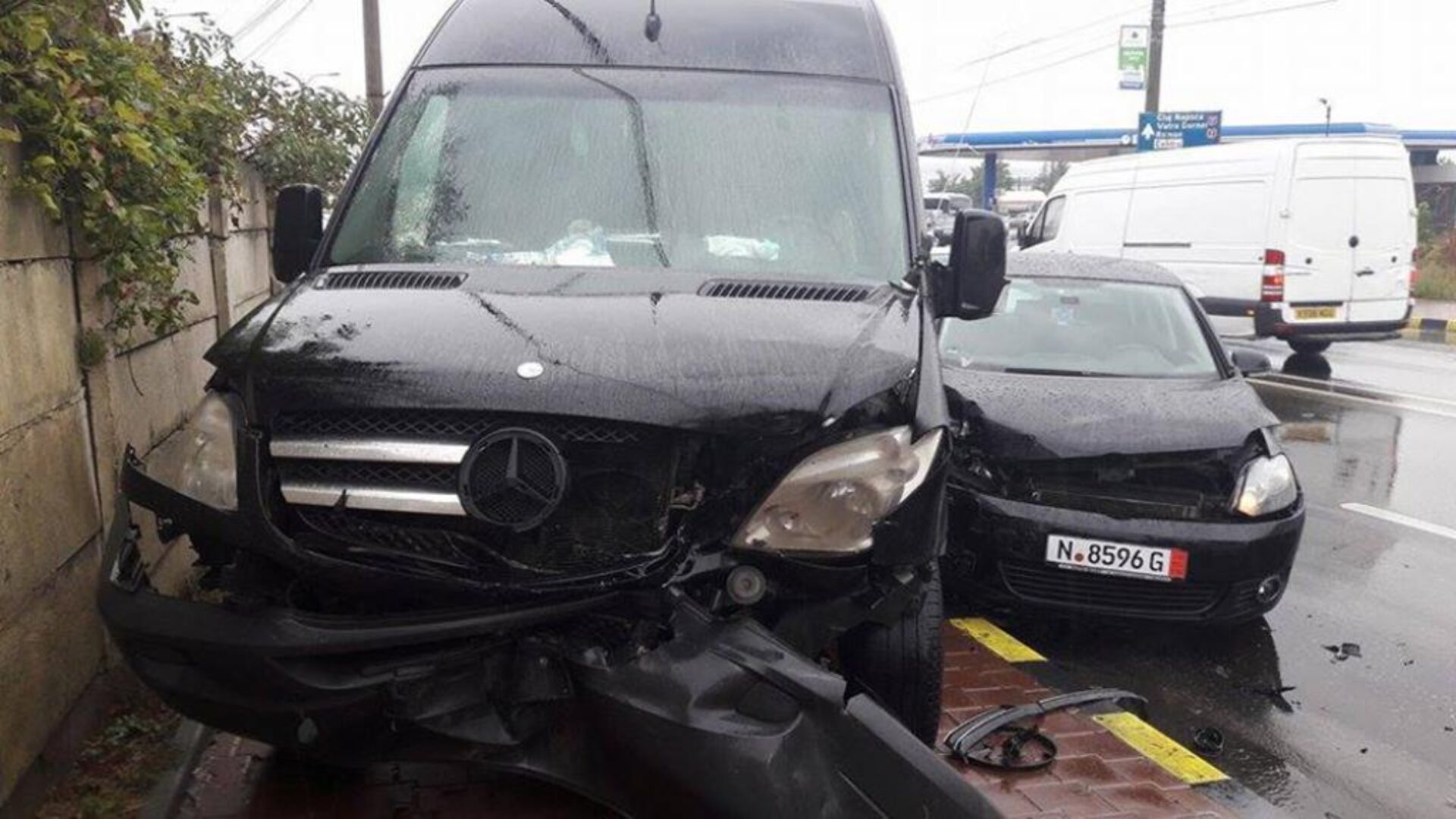 Două autoturisme și o autoutilitară au fost implicate într-o coliziune în lanț, ieri, pe artera principală a municipiului Suceava, Calea Unirii, imediat după pasarela de peste calea ferată, spre cartierul Burdujeni. Cele două autoturisme circulau dinspre Burdujeni, pe cele două benzi de mers, iar la un moment dat au intrat în coliziune. Unul dintre autoturisme a pătruns pe sens opus, unde a lovit destul de violent un microbuz Mercedes. Microbuzul a fost proiectat pe trotuar, unde s-a oprit în zid.