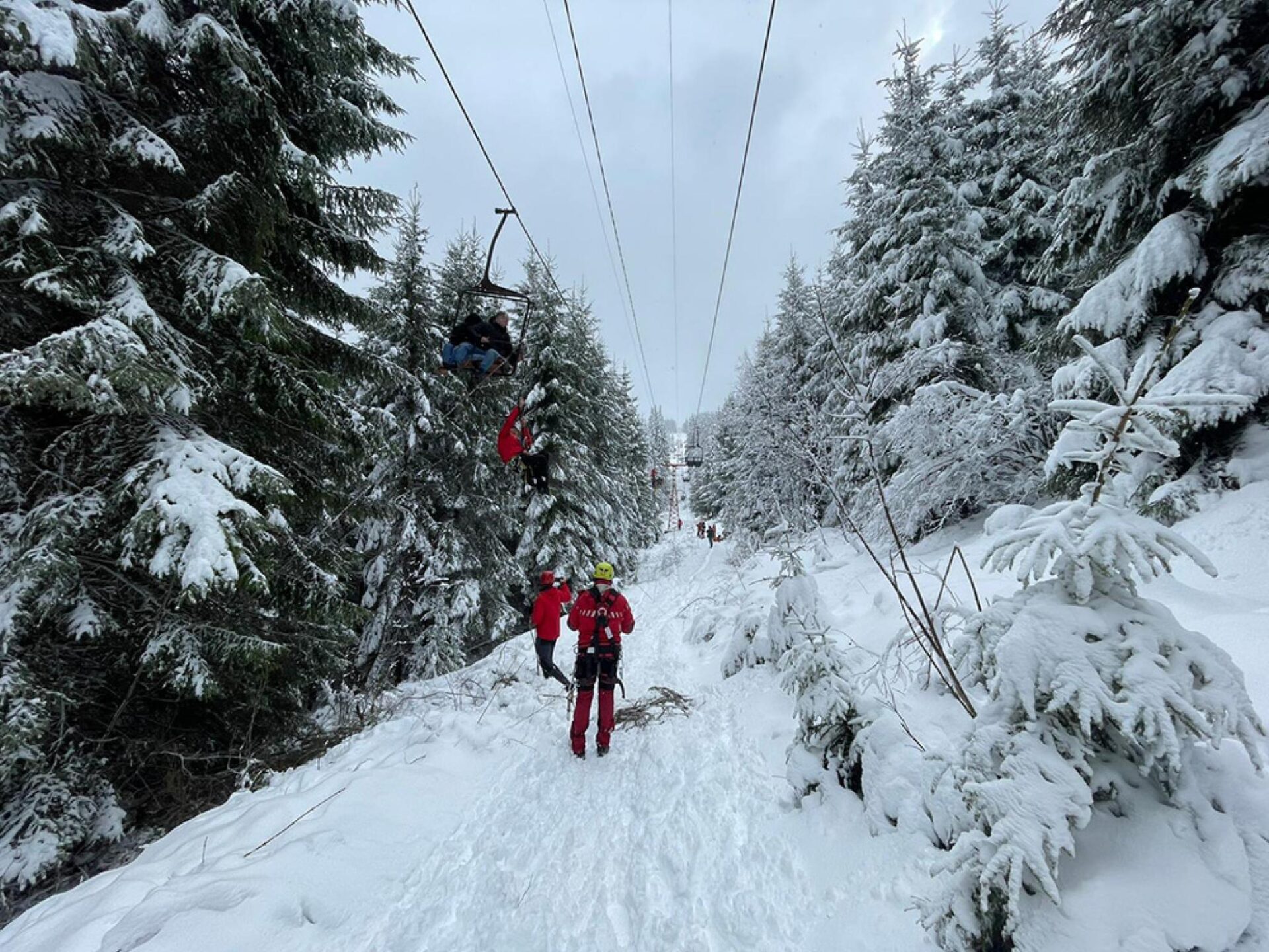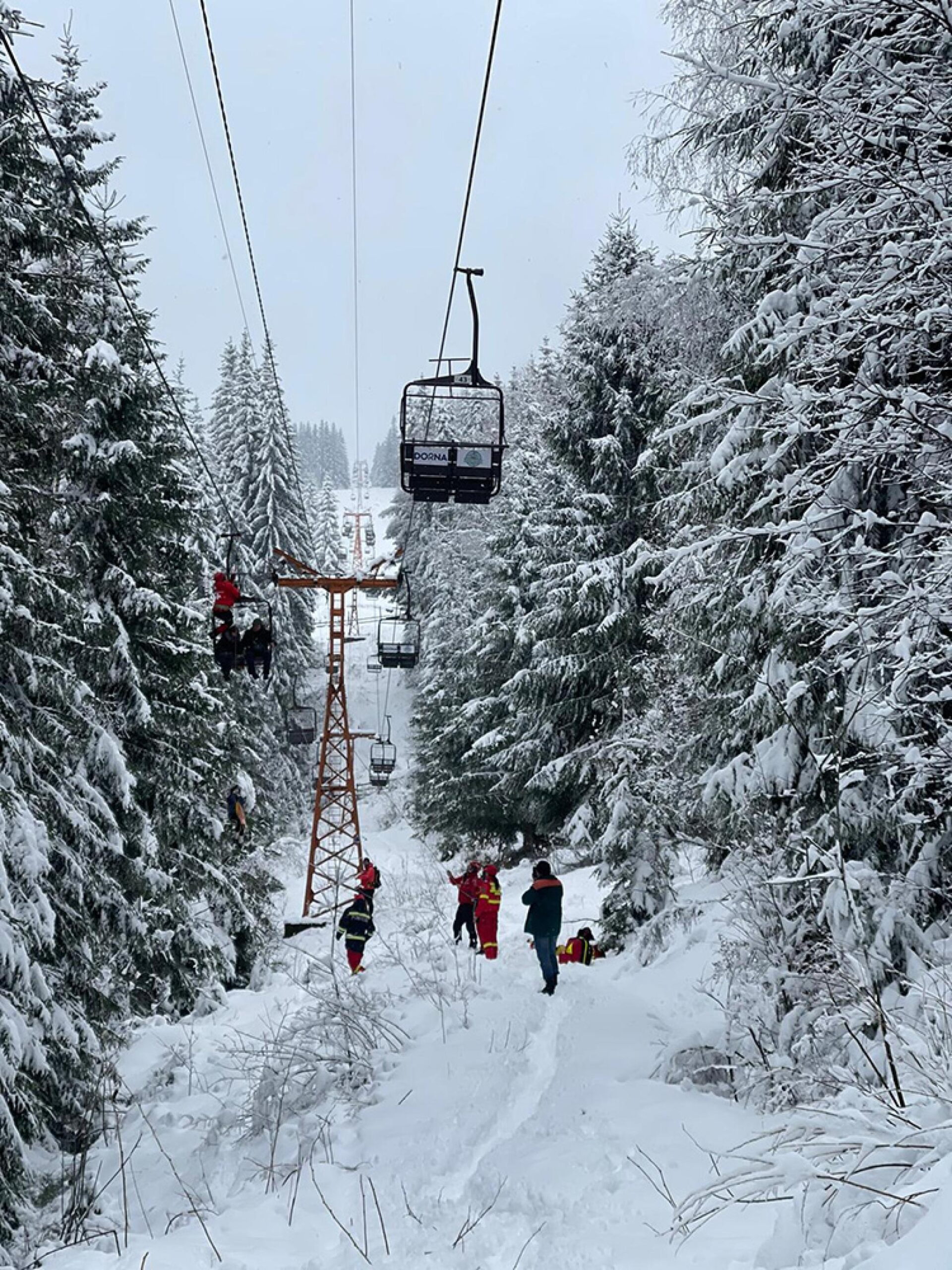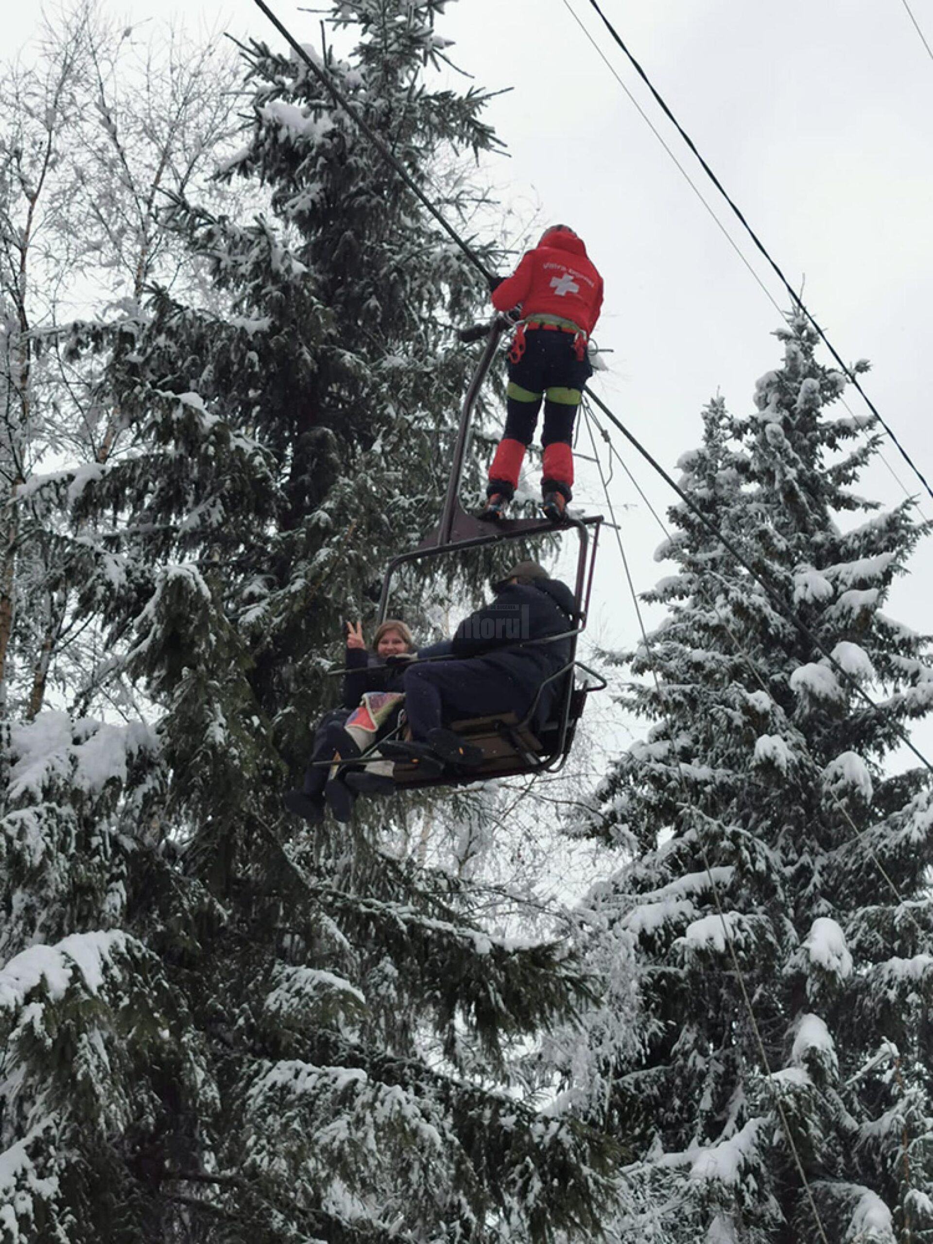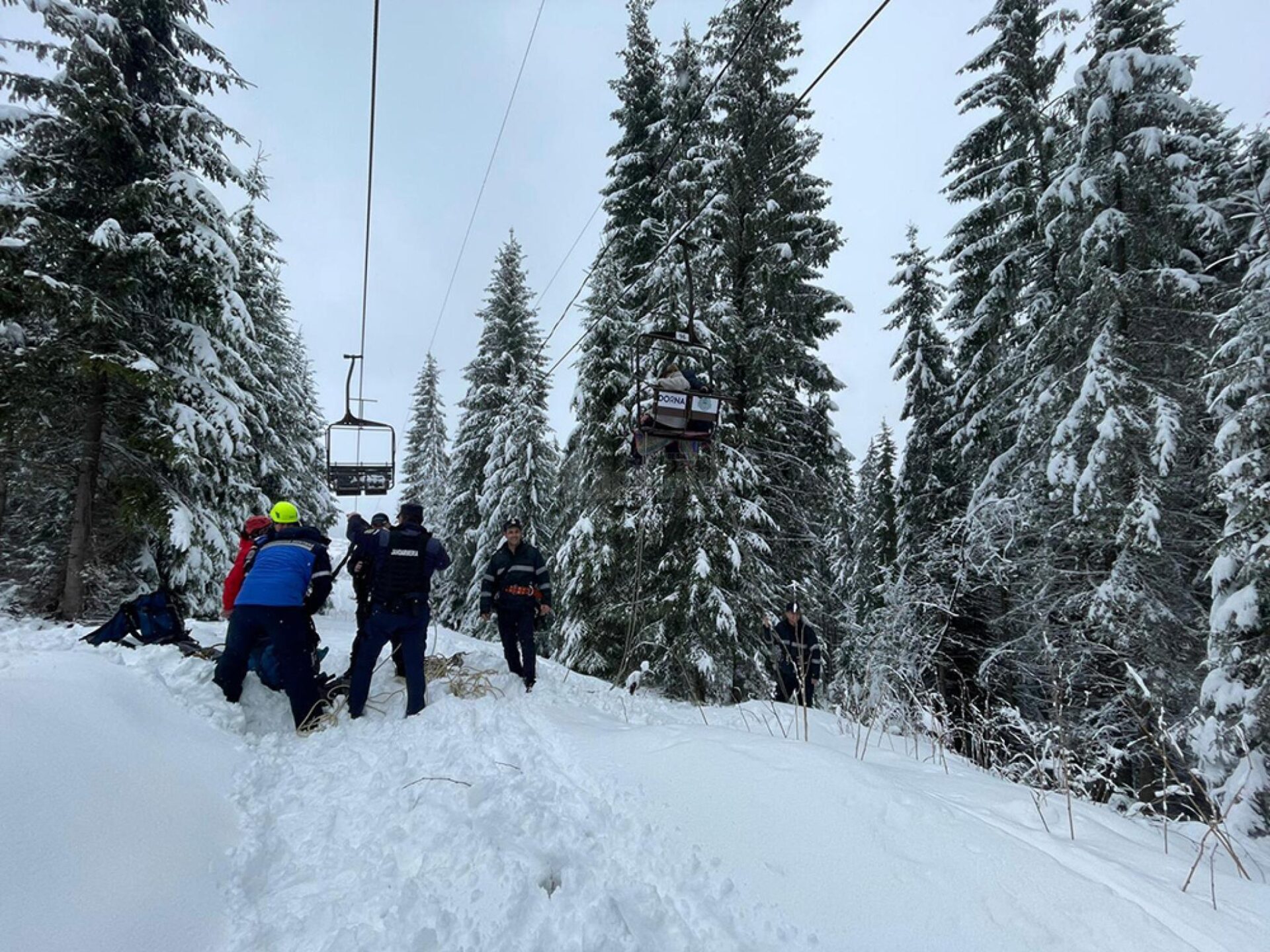 Intervenția a fost asigurată de pompieri militari și de salvamontiști, care au intervenit cu mijloace specifice pentru coborârea persoanelor. Au fost mobilizate la fața locului și efective ale Jandarmeriei Montane Vatra Dornei.