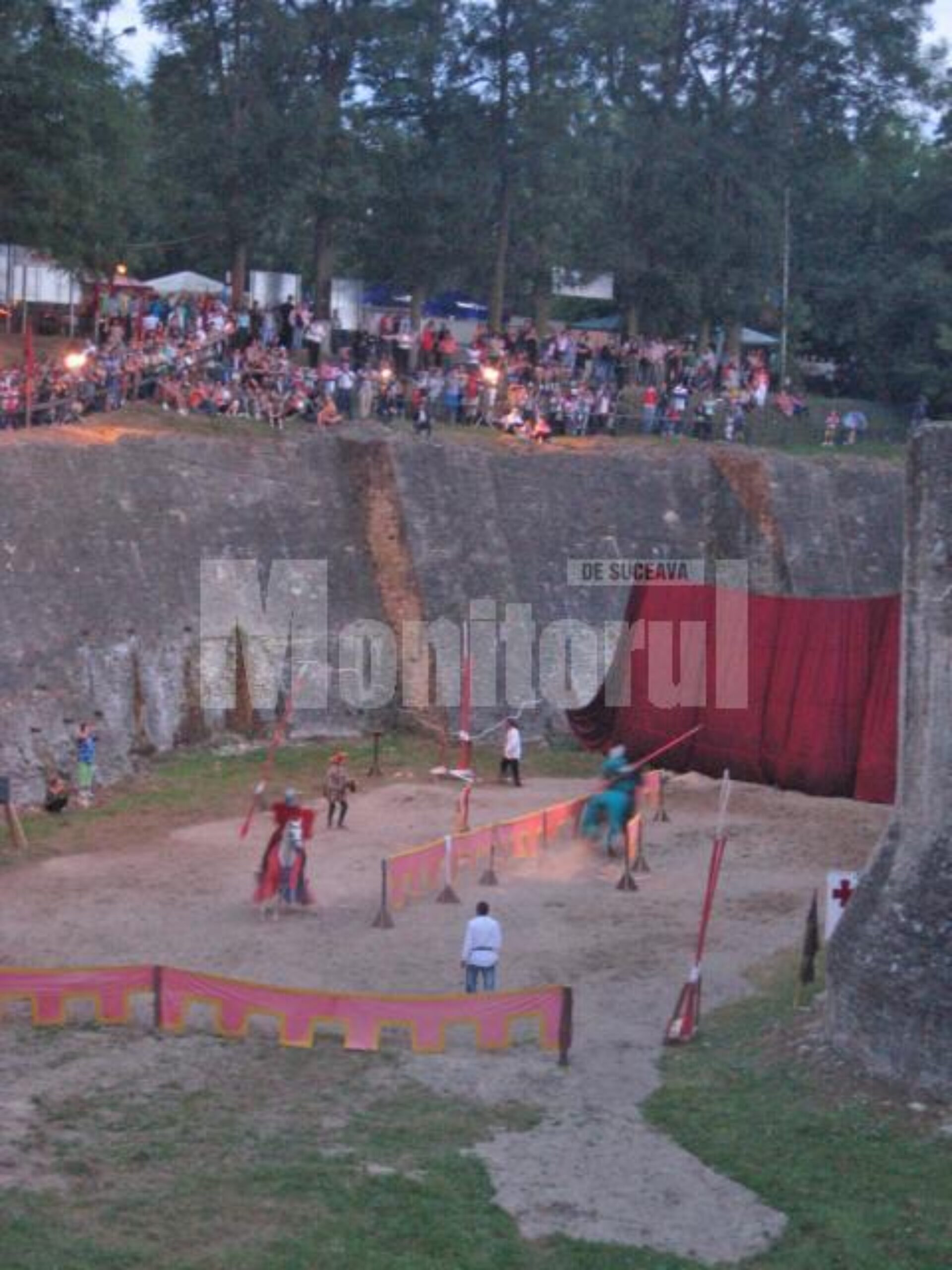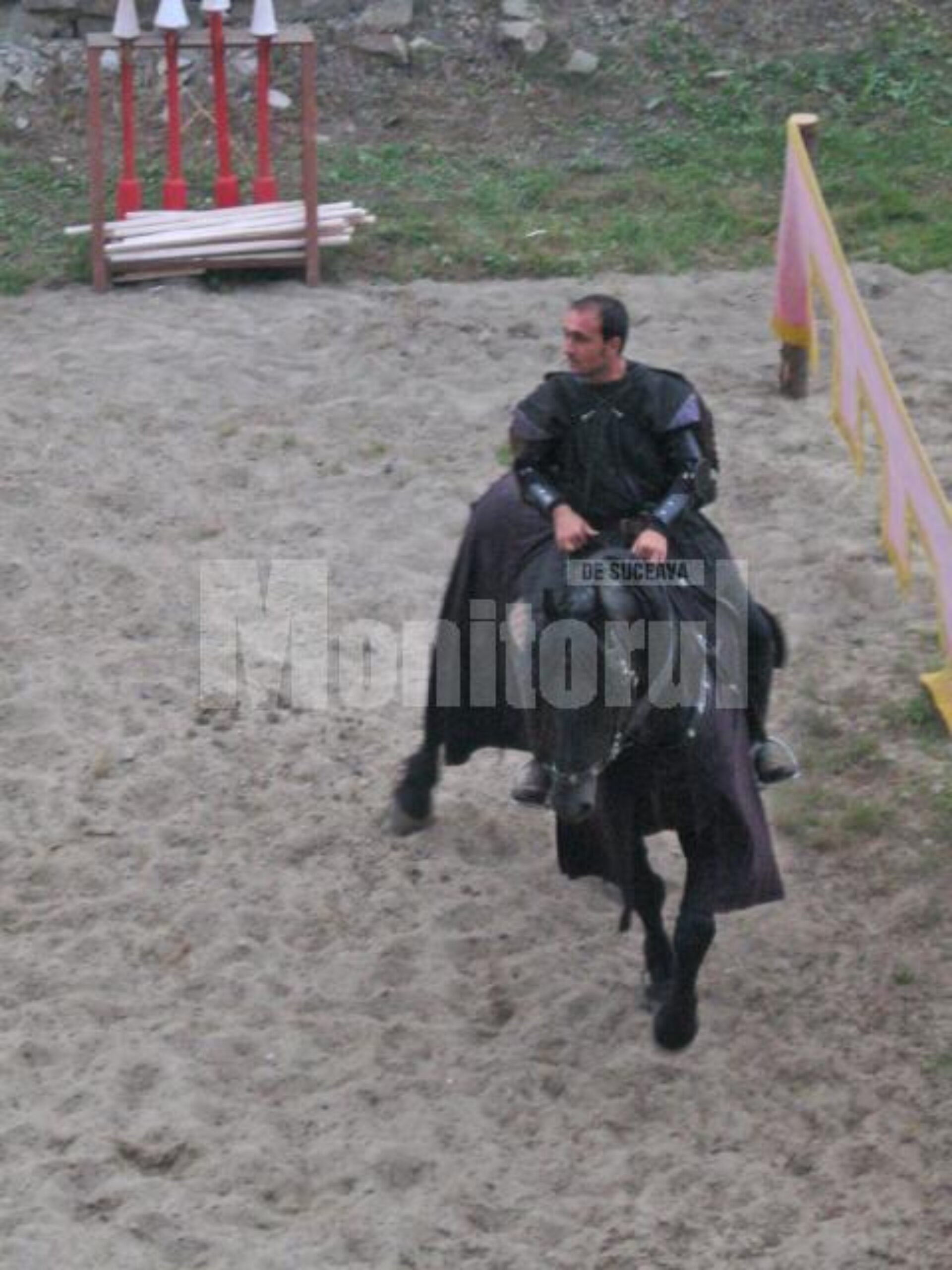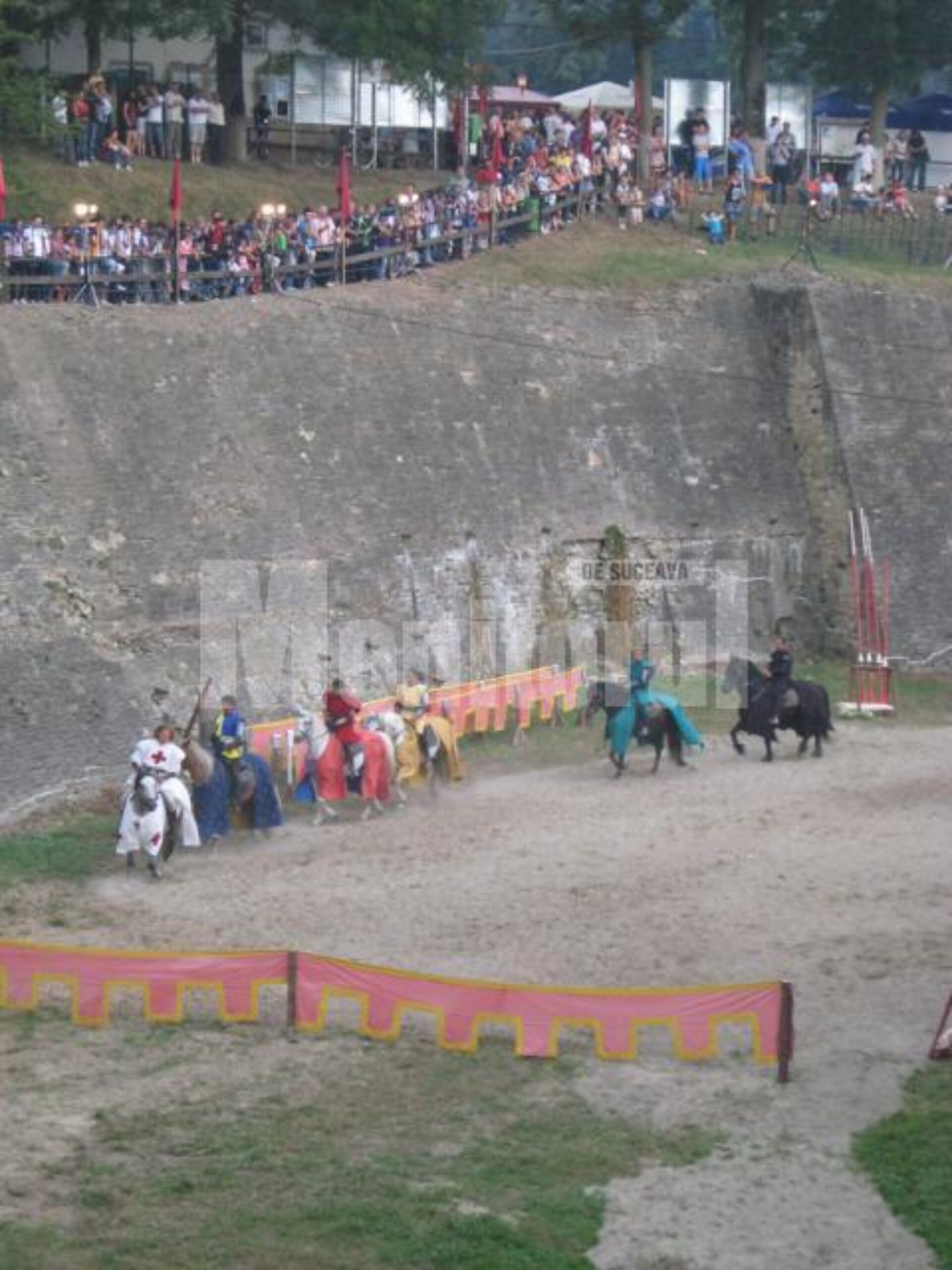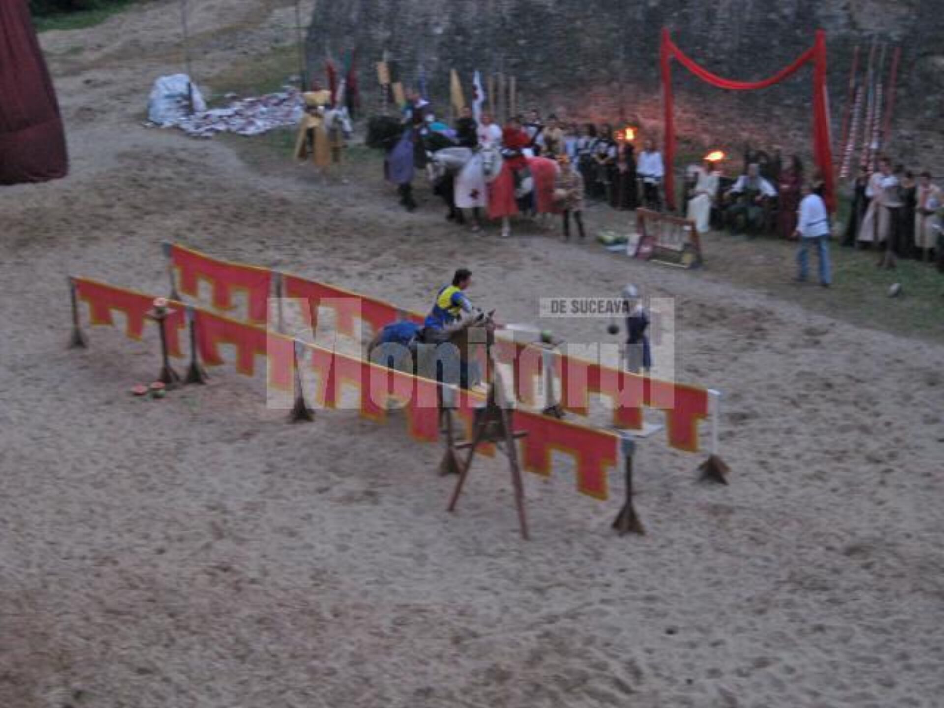 Turnirul cavalerilor, realizat de cascadorii trupei lui Vali Vasilescu (la cea de-a doua reprezentație din programul Festivalului de Artă Medievală “Ștefan cel Mare”, din seara de încheiere a manifestărilor), a fost un spectacol care, cu siguranță, a atras cel mai mare număr de privitori.