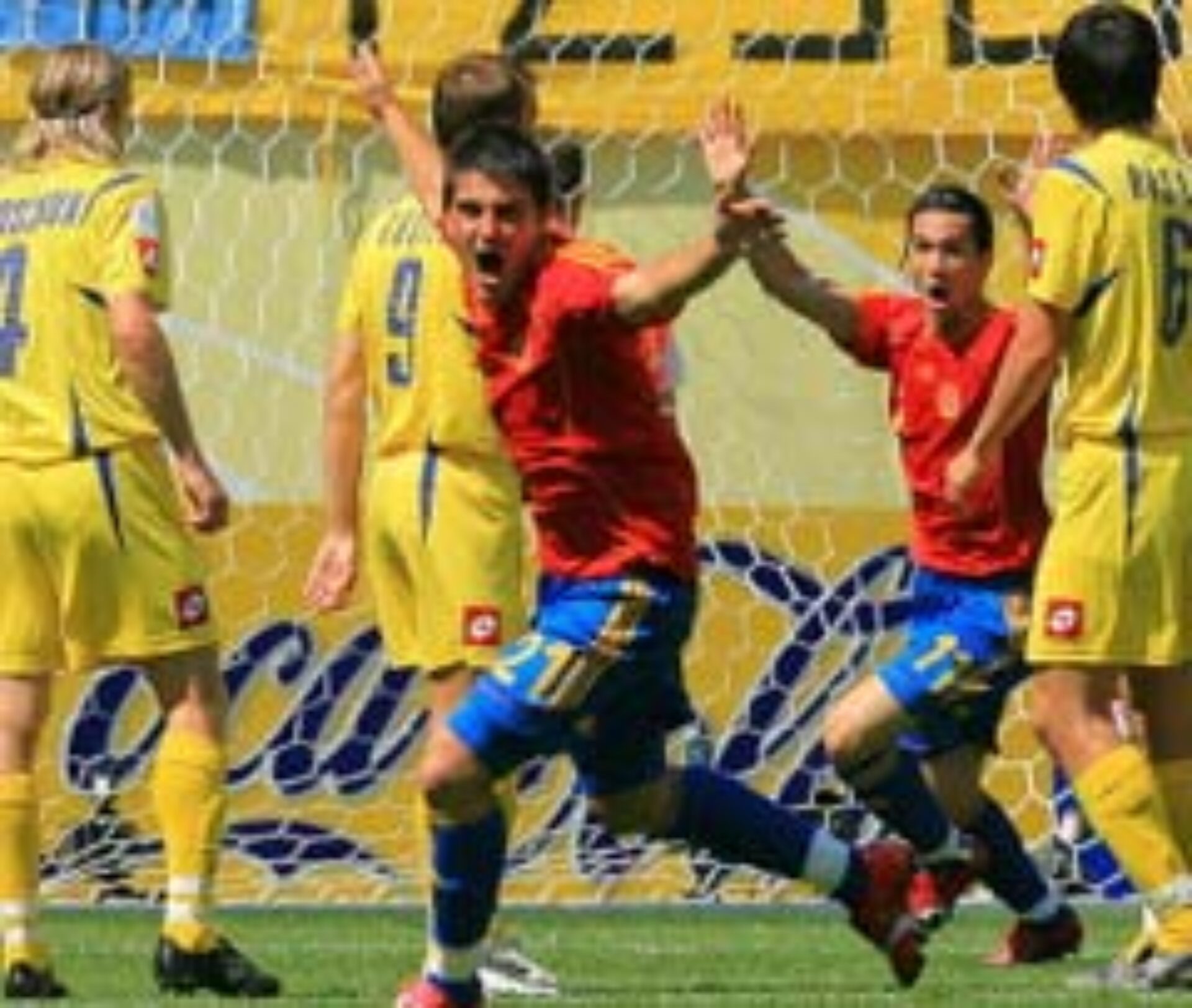 Grupa H și-a programat derbiul Spania-Ucraina încă de la început. Un derbi numai pe hârtie, pentru că meciul a fost la discreția ibericilor din primul și până în ultimul minut. Selecționerul Spaniei, Luis Aragones, a început partida cu legiunea străină de la Liverpool, Luis Garcia și Xabi Alonso, pe teren și cu cea de la Arsenal, Reyes și Cesc Fabregas, pe bancă. Tot pe bancă a stat și vedeta Raul, în atacul spaniol fiind preferați David Villa și Fernando Torres. În echipa ucraineană, aflată la primul meci din istorie la un turneu final al Cupei Mondiale, antrenorul Oleg Blohin l-a forțat titular pe Șevcenko, revenit după o accidentare, și a trimis cinci jucători de la vicecampioana Dinamo Kiev să-l susțină. Campioana Șahtior Donețk, pregătită de Mircea Lucescu, a fost reprezentată în formația de start de un singur jucător, mijlocașul Timoșciuk. Spaniolii și-au început raidurile din primul minut, combinațiile atacanților Garcia, Torres și Villa, bine susținuți de Xavi, Alonso și Sergio Ramos, ultimul într-o poziție mai puțin obișnuită decât cea de la Real, aceea de fundaș dreapta, punând probleme defensivei ucrainene. Două faze fixe au stabilit scorul primei reprize. În minutul 12, brazilianul naturalizat spaniol Senna a trimis o bombă de la peste 25 de metri și l-a obligat pe Șovkovski să respingă în corner. Lovitura de la colț a fost executată foarte bine de Xavi, iar Alonso a trimis cu capul mingea în poartă, deschizând scorul. Apoi, în minutul 16, Pernia a fost faultat la 23 de metri, iar David Villa a marcat din lovitura liberă dictată de Massimo Busacca, după ce mingea a fost deviată de zidul ucrainean. La 2-0, spaniolii au închis jocul, iar elevii lui Oleg Blohin au atacat fără vlagă poarta lui Casillas. Șevcenko, izolat în mijlocul apărării spaniole, nu a beneficiat de mingi utile, fiind anonim pe toată durata partidei. O singură fază a fost pe placul său, în minutul 12, dar vedeta proaspăt achiziționată de Chelsea a fost oprită nejustificat pentru ofsaid de asistentul elvețian. Același arbitru asistent a mai „comis-o” o dată în minutul 42, când a semnalizat aiurea o poziție de ofsaid la Voronin. Repriza a doua a început la fel de bine pentru spanioli. În minutul 47, Torres, talonat de Vașciuk, a scăpat spre poarta lui Șovkovski și a șutat slab. Însă Busacca a considerat că atacantul de la Atletico Madrid a fost jenat de fundașul ucrainean, a dictat penalti și i-a arătat cartonașul roșu fotbalistului de la Dinamo Kiev. O nouă fază discutabilă, judecată în favoarea Spaniei. Villa a fructificat prima lovitura de la 11 metri acordată la această ediție a Cupei Mondiale, cu toată opoziția lui Șovkovski, care a ghicit traiectoria mingei, dar nu a putut să o respingă. Cu un om mai mult pe teren, spaniolii au jucat la spectacol, în timp ce ucrainenii au căutat golul de onoare. Șuturile expediate de Voronin și Rebrov au fost aproape de a-și atinge ținta, dar tot ibericii au înscris: o combinație de senzație care i-a avut în prim-plan pe Puyol și pe Fernando Torres a fost finalizată de ultimul cu un șut imparabil, în minutul 82. Astfel, Spania a câștigat cu 4-0, a stabilit cea mai mare diferență de scor a turneului final până în prezent și s-a instalat confortabil pe primul loc al Grupei H. Pentru echipa lui Blohin nu se anunță o viață ușoară în această grupă, din care mai fac parte Tunisia și Arabia Saudită.