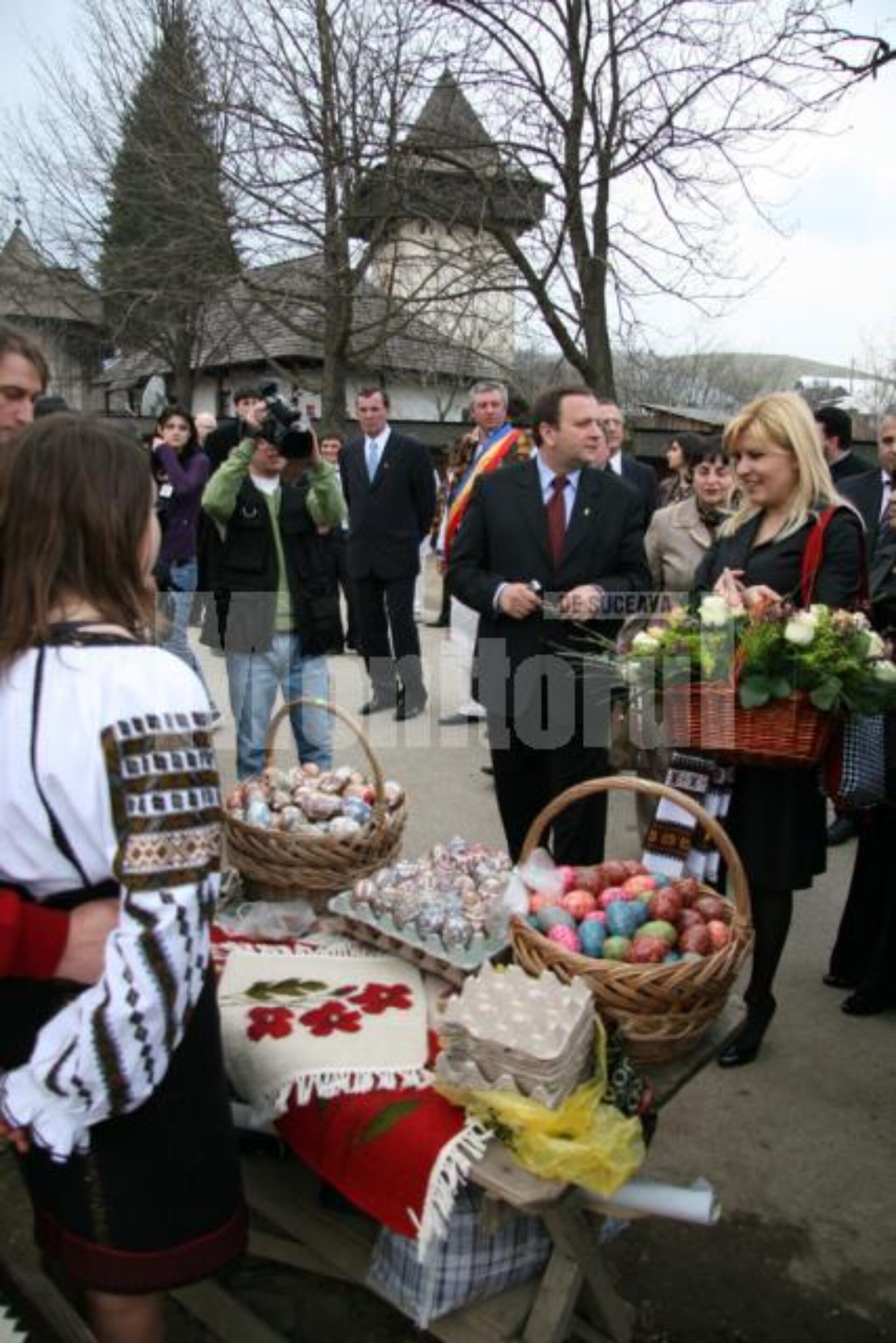 Atât la Mănăstirea Humorului, unde a fost întâmpinată de localnici de un car cu ouă pictate tras de boi, cât și la Vatra Moldoviței, unde a mers tot ieri, ministrul Turismului a vizitat ateliere de încondeiat ouă. Elena Udrea s-a declarat impresionată, pe de o parte, de arta măicuțelor din Mănăstirea Humorului care încondeiau ouă, dar și de un muzeu particular al ouălor încondeiate din Vatra Moldoviței, unele dintre exponate având o vechime de circa o sută de ani.