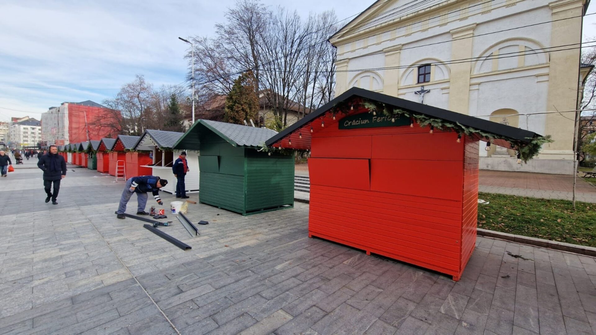 Forfotă mare în centrul Sucevei, unde se fac ultimele pregătiri pentru deschiderea Târgului de Crăciun, care va fi deschis de la Ziua Bucovinei până la jumătatea lunii ianuarie, când este Revelionul pe stil vechi.