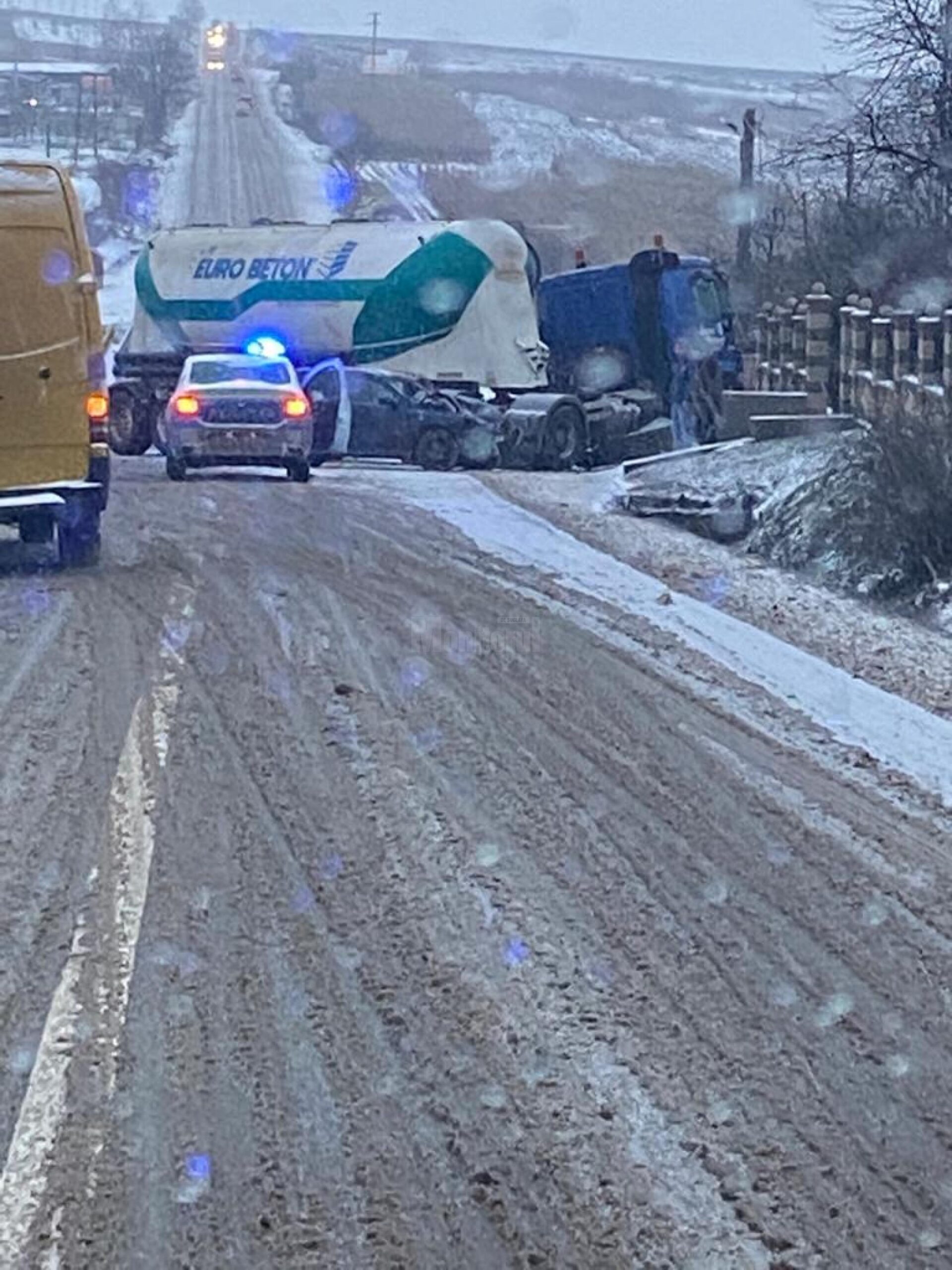 Un accident rutier care putea avea repercusiuni grave s-a petrecut în această dimineață la Dărmănești, pe DN 2, în apropierea intersecției cu drumul spre localitatea Costâna. Pe un drum cu circulație îngreunată din cauza ninsorii, un autotren pentru transport ciment, înmatriculat în județul Iași, a intrat în coliziune cu un autoturism Opel, șoferul autoturismului fiind rănit. În urma impactului, cabina autotrenului a ajuns în afara părții carosabile, iar remorca de-a curmezișul drumului, blocând parțial circulația rutieră în zonă.
