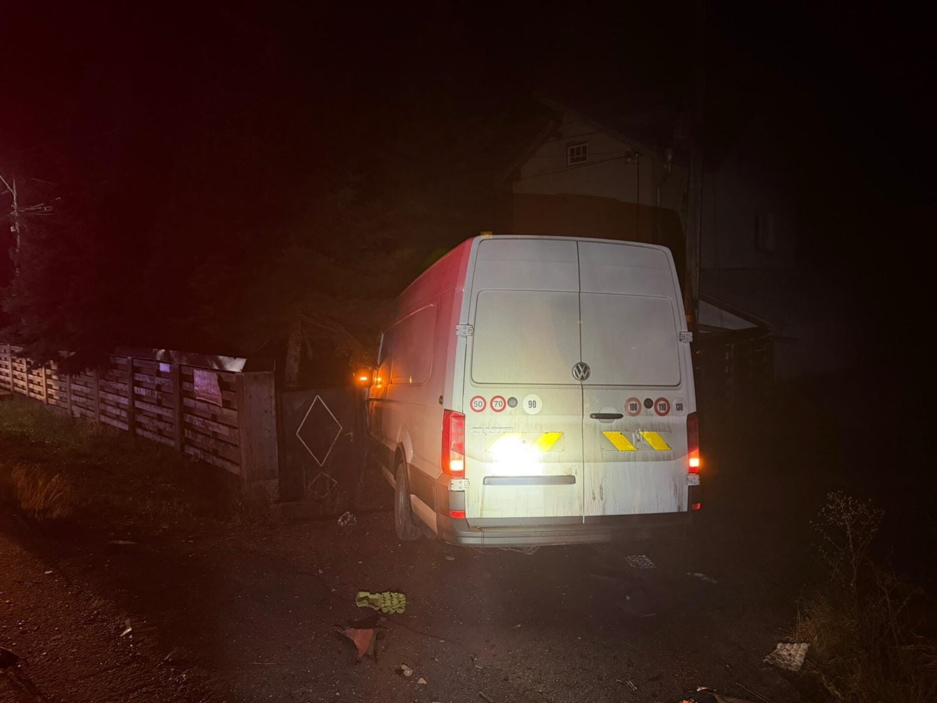 O autoutilitară și un autoturism s-au ciocnit violent, iar în urma impactului ambele autovehicule au fost aruncate în afara carosabilului și au lovit gardul unei gospodării.
