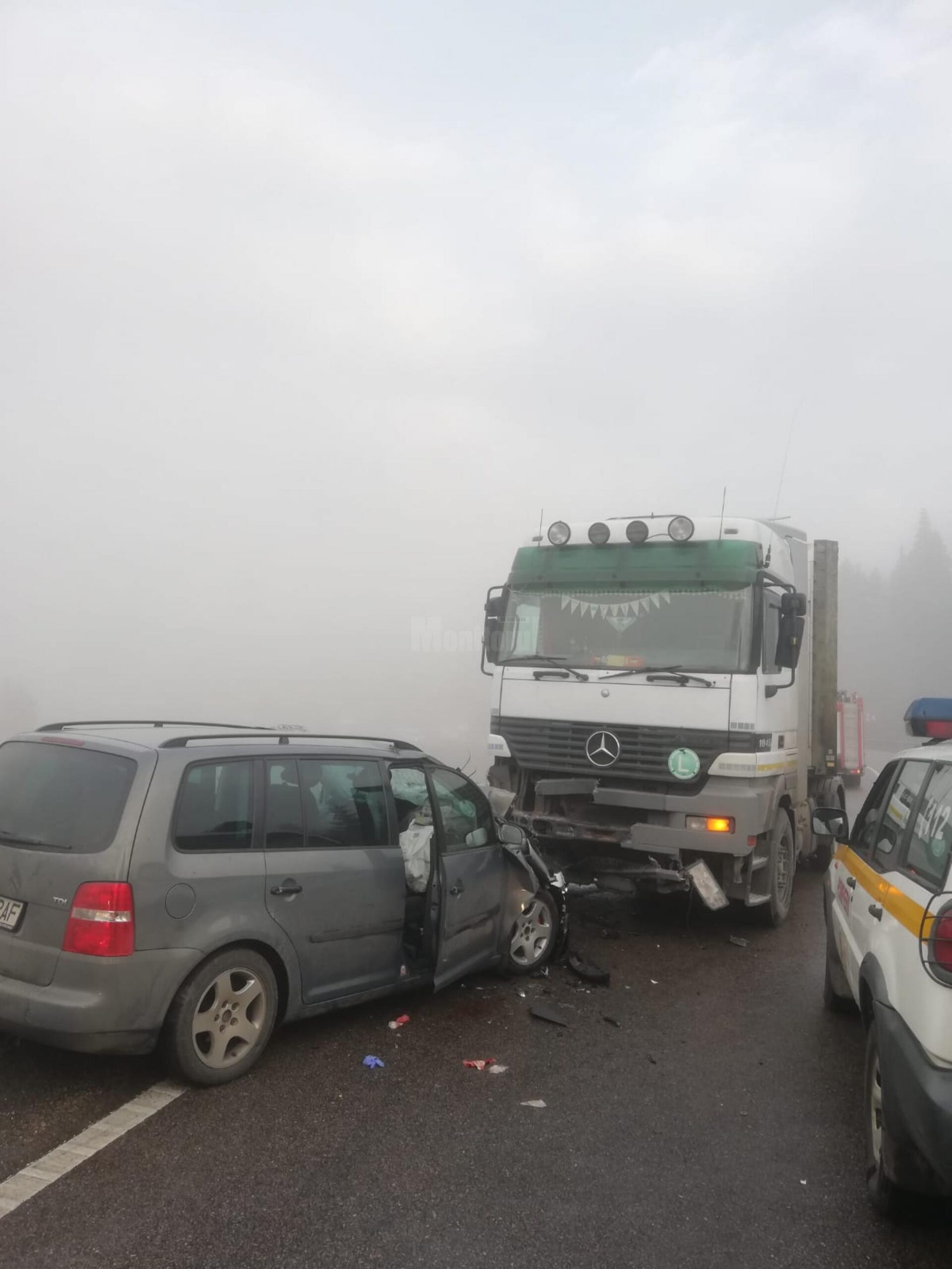 Impactul s-a produs în jurul orei 08.00, când din cauze încă neelucidate, un autoturism a intrat în coliziune cu un autotren. La fața locului a fost solicitată intervenția pompierilor din cadrul Modulului SMURD Poiana Stampei, precum și din cadrul Detașamentului de Pompieri Vatra Dornei, care au acționat cu ajutorul accesoriilor pentru descarcerare ale autospecialelor din dotare și cu două echipaje ale ambulanțelor SMURD. În sprijinul lor au venit și două echipaje ale Serviciului de Ambulanță Județean Suceava.