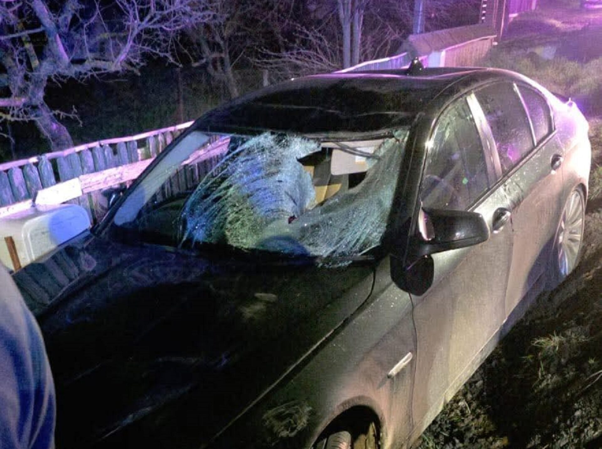 După cum se vede și în imagine, bărbatul s-a lovit puternic de parbriz.