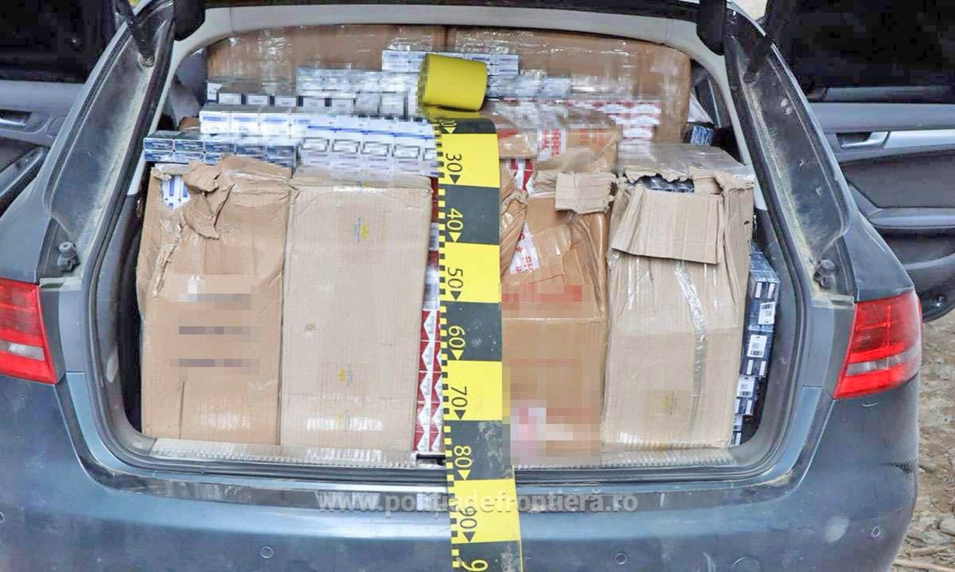 În autoturismul Audi erau vizibile cutii mari cu țigări.