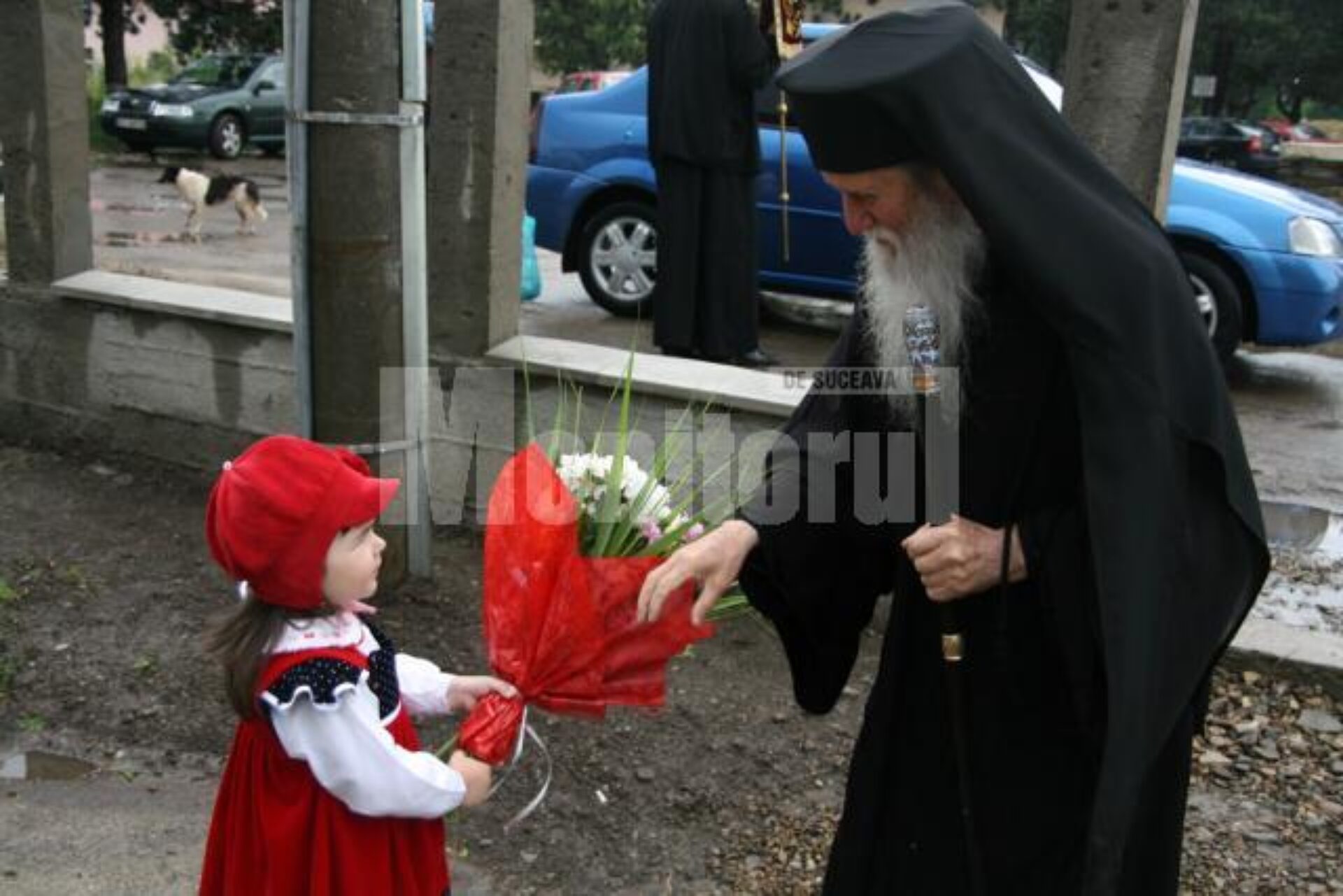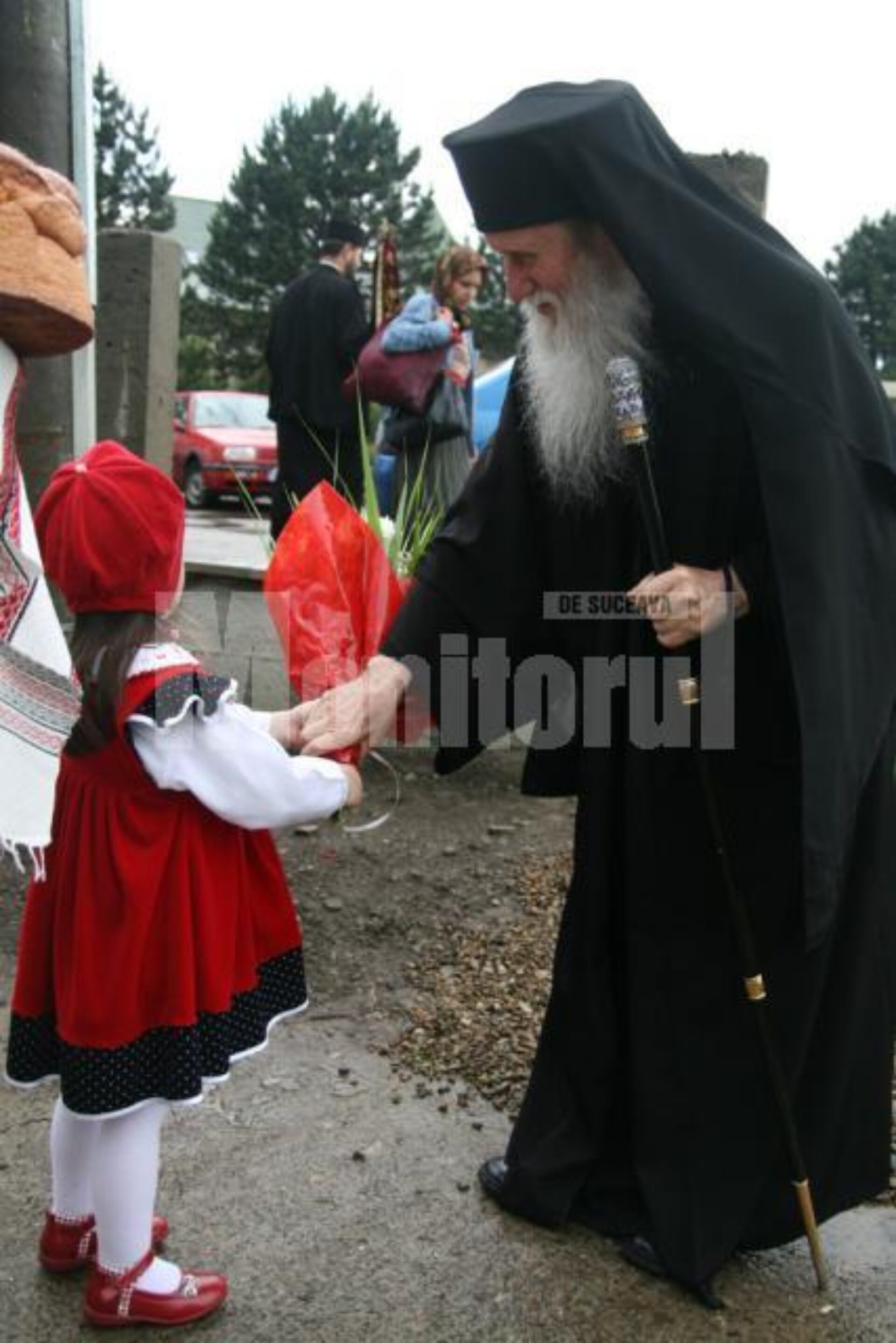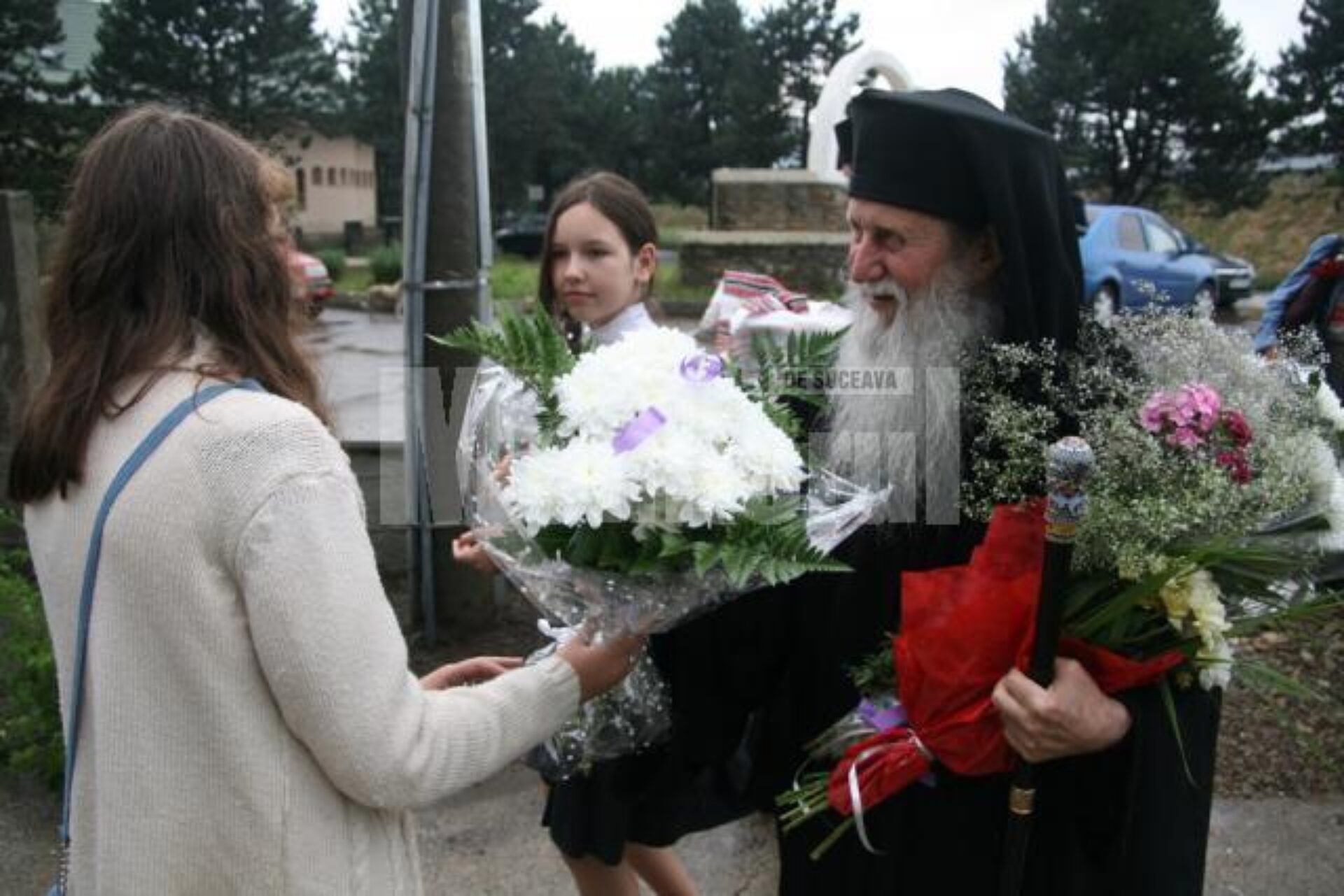 La ora 17:00, la Biserica „Sf. Petru și Pavel” a fost întâmpinat cu pâine și sare, după cum este obiceiul în Bucovina, ÎPS Pimen, Arhiepiscopul Sucevei și Rădăuților. Mai mulți copii și tineri i-au oferit flori arhiepiscopului sucevean. ÎPS Pimen a binecuvântat icoana adusă din Ucraina, în care se află un fragment din moaștele Sf. Iov de la de la Poceaev, după care a oficiat, împreună cu soborul de preoți, slujba Vecerniei. Înainte de începerea slujbei, un grup de tineri au interpretat un cântec religios în limba ucraineană.