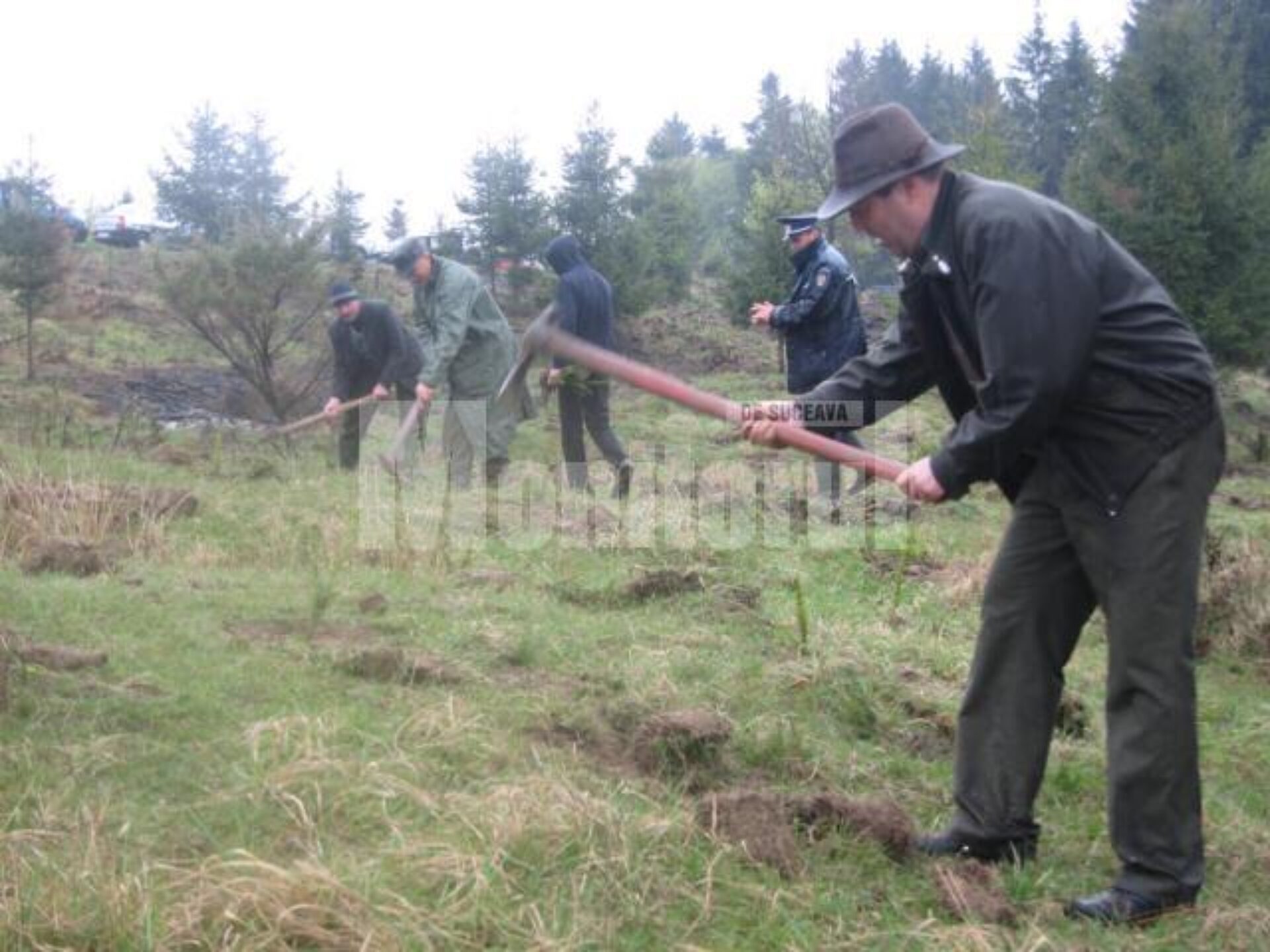 Aproape o sută de persoane au participat ieri la o acțiune de împădurire organizată de Primăria comunei Bogdănești, împreună cu Ocolul Silvic Râșca. Angajații primăriei din această comună, ai Ocolului Silvic Râșca, alături de aproximativ 40 de voluntari, printre care s-a numărat și Niculai Barbă, consilierul președintelui Consiliului Județean, Gheorghe Flutur, au plantat aproximativ 4.000 de puieți de molid și frasin, pe o suprafață de un hectar de teren degradat.