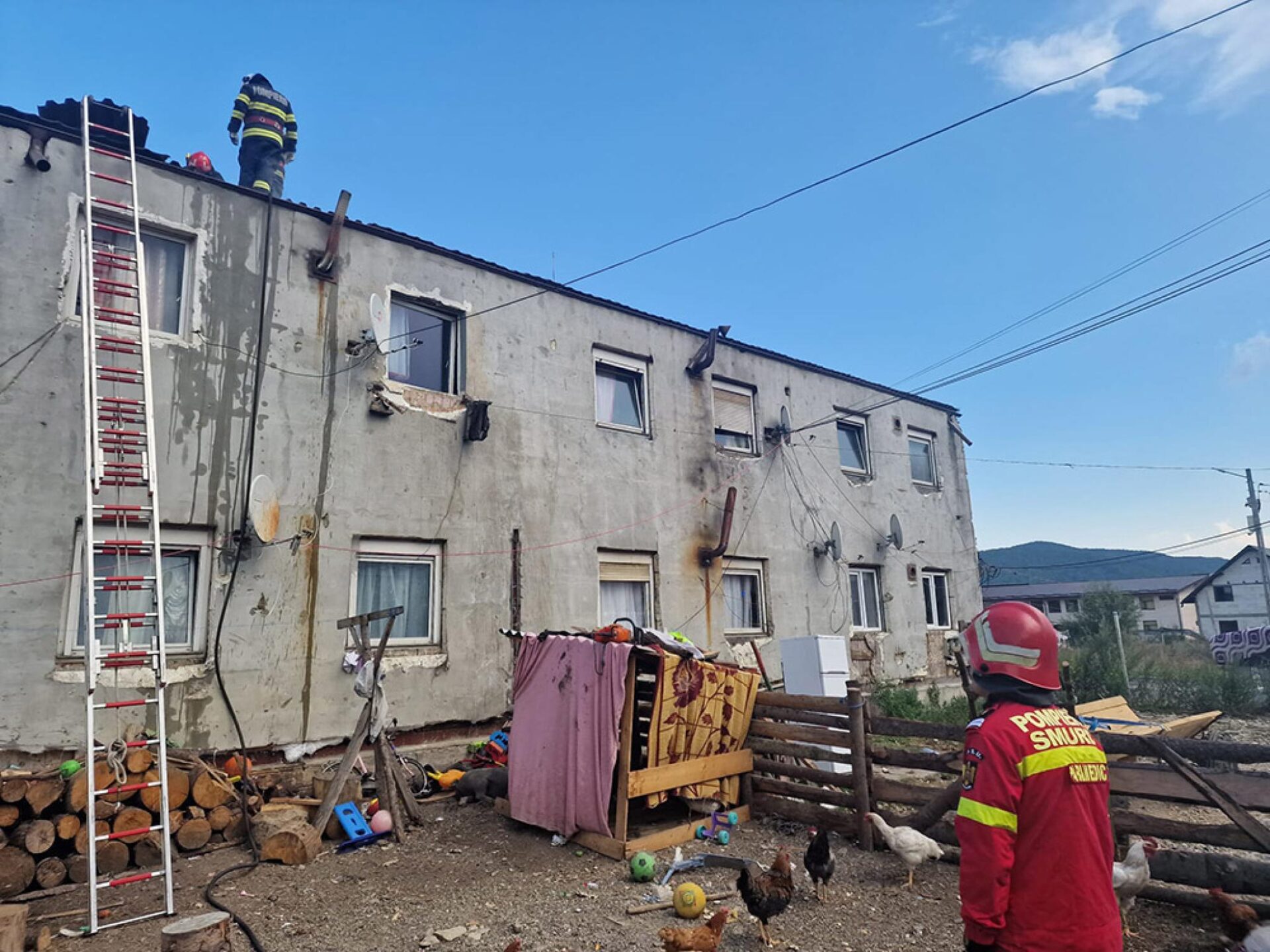 Un număr de 10 persoane s-au autoevacuat în după-amiaza zilei de marți după ce un incendiu a cuprins acoperișul unei clădiri unde sunt 13 apartamente. Este vorba de o clădire cu un etaj situată în Gura Humorului. Pentru stingerea incendiului au fost trimise două autospeciale ale pompierilor, dar și un echipaj SMURD. În momentul în care pompierii au ajuns la locul incendiului, flăcările se manifestau pe circa 60 metri pătrați, astfel încât salvatorii au dat deoparte acoperișul pentru a putea lichida toate focarele. Din fericire, nimeni nu a avut de suferit în urma acestui incendiu. Pompierii au reușit să lichideze flăcările destul de repede și au stabilit și cauza izbucnirii: un scurtcircuit plecat de la un conductor deteriorat.