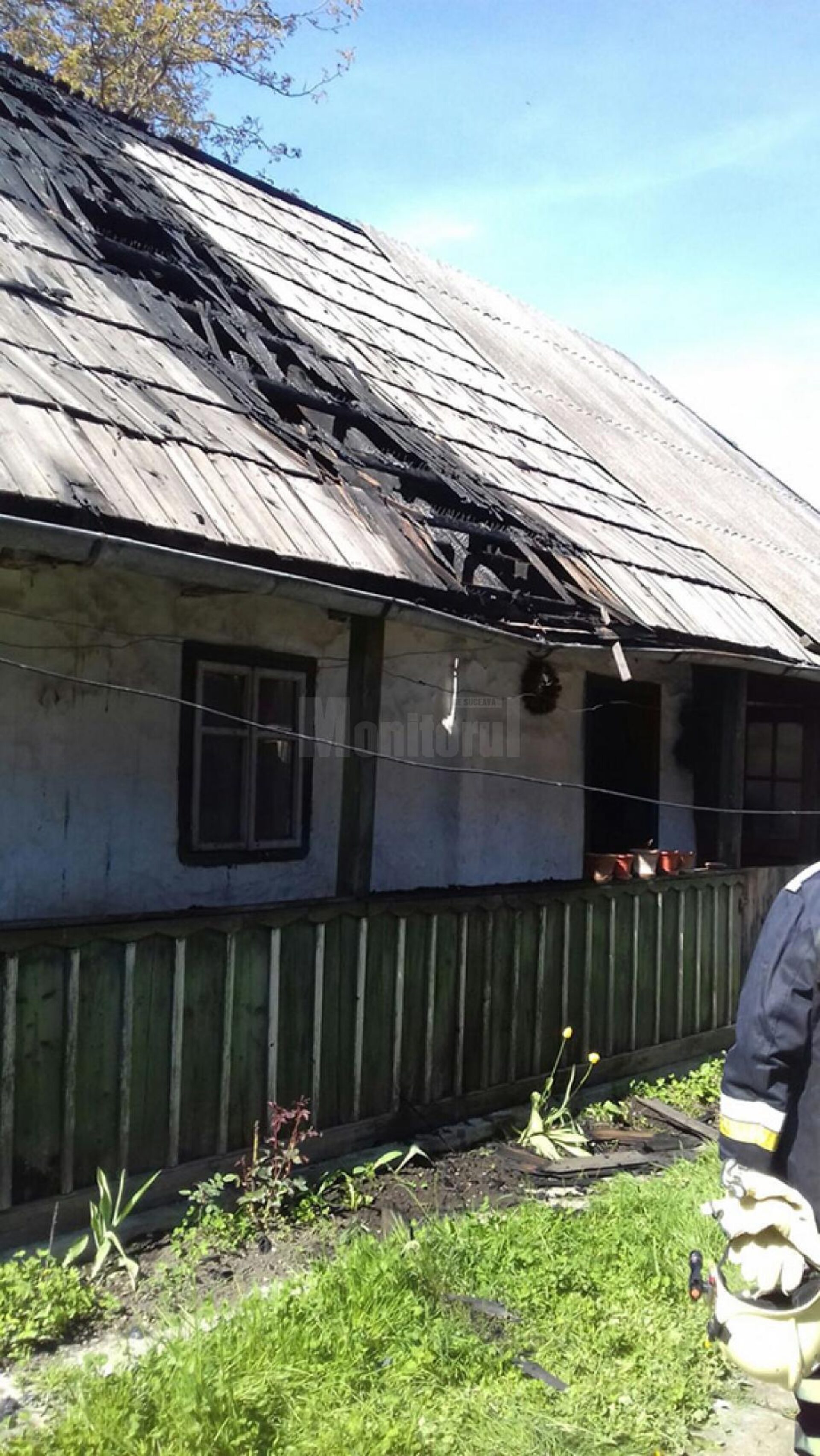 La a treia gospodărie, a unui bătrân de 72 de ani, au ars 10 mp din acoperiș, pagubele fiind limitate.