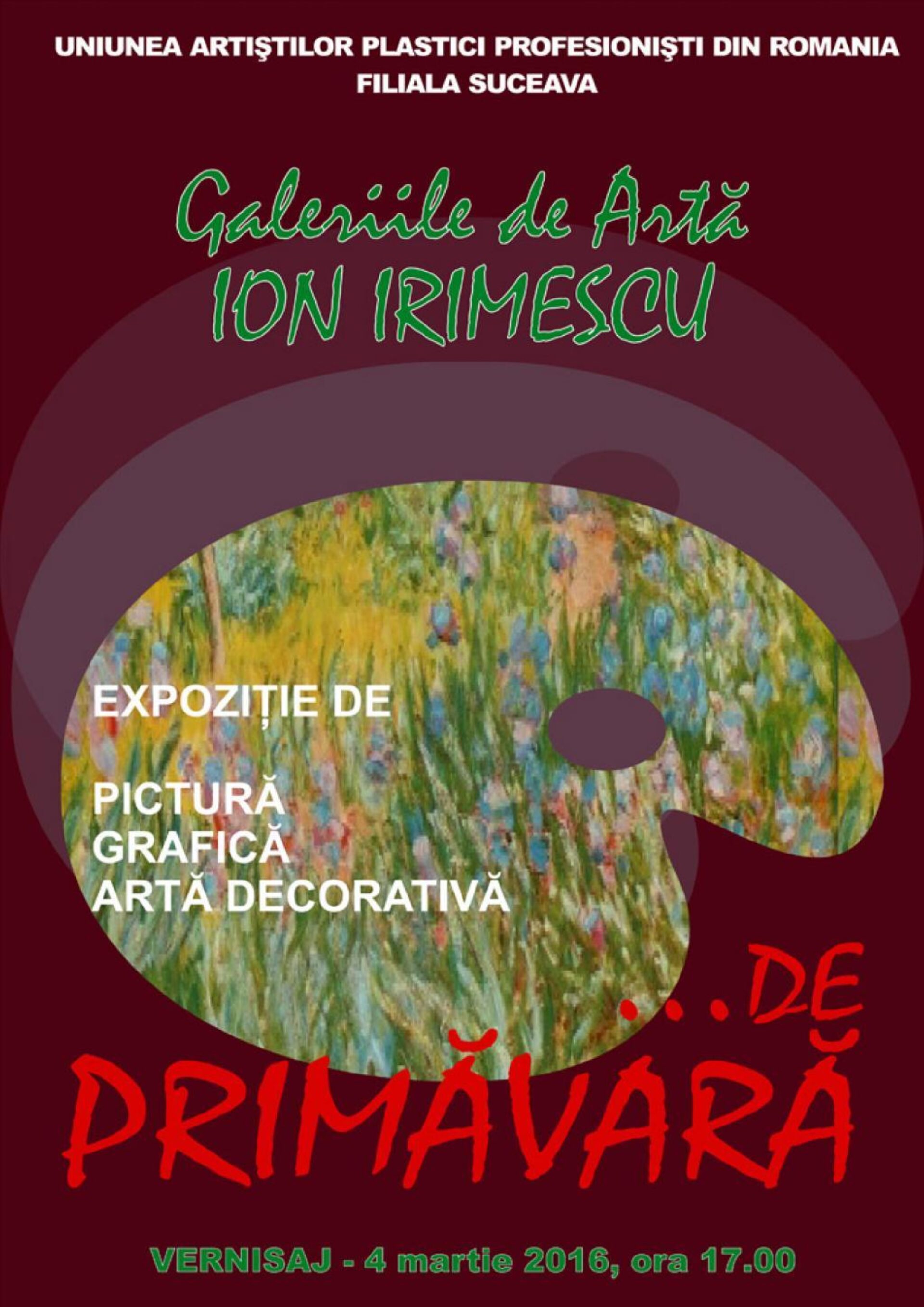 Galeria de Artă „Ion Irimescu” din municipiul Suceava ne întâmpină, la început de Mărțișor, cu expoziția colectivă cu genericul „…de Primăvară”, organizată de Filiala Suceava a Uniunii Artiștilor Plastici din România.