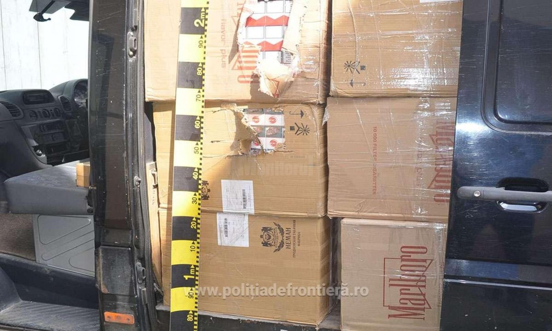 ”Colegii noștri au acționat pentru interceptarea și oprirea autovehiculului în cauză, iar în urma unor activități specifice, mașina a fost descoperită abandonată, în curtea unui imobil din localitatea Costișa, în interiorul acesteia observându-se mai multe colete cu țigări. În urma celor constatate, microbuzul și țigările au fost transportate la sediul poliției de frontieră, unde, în urma inventarierii, a rezultat cantitatea de 80.960 de pachete cu țigări, de diferite mărci, de proveniență Duty Free și Belarus”, se arată într-un comunicat al Poliției de Frontieră.