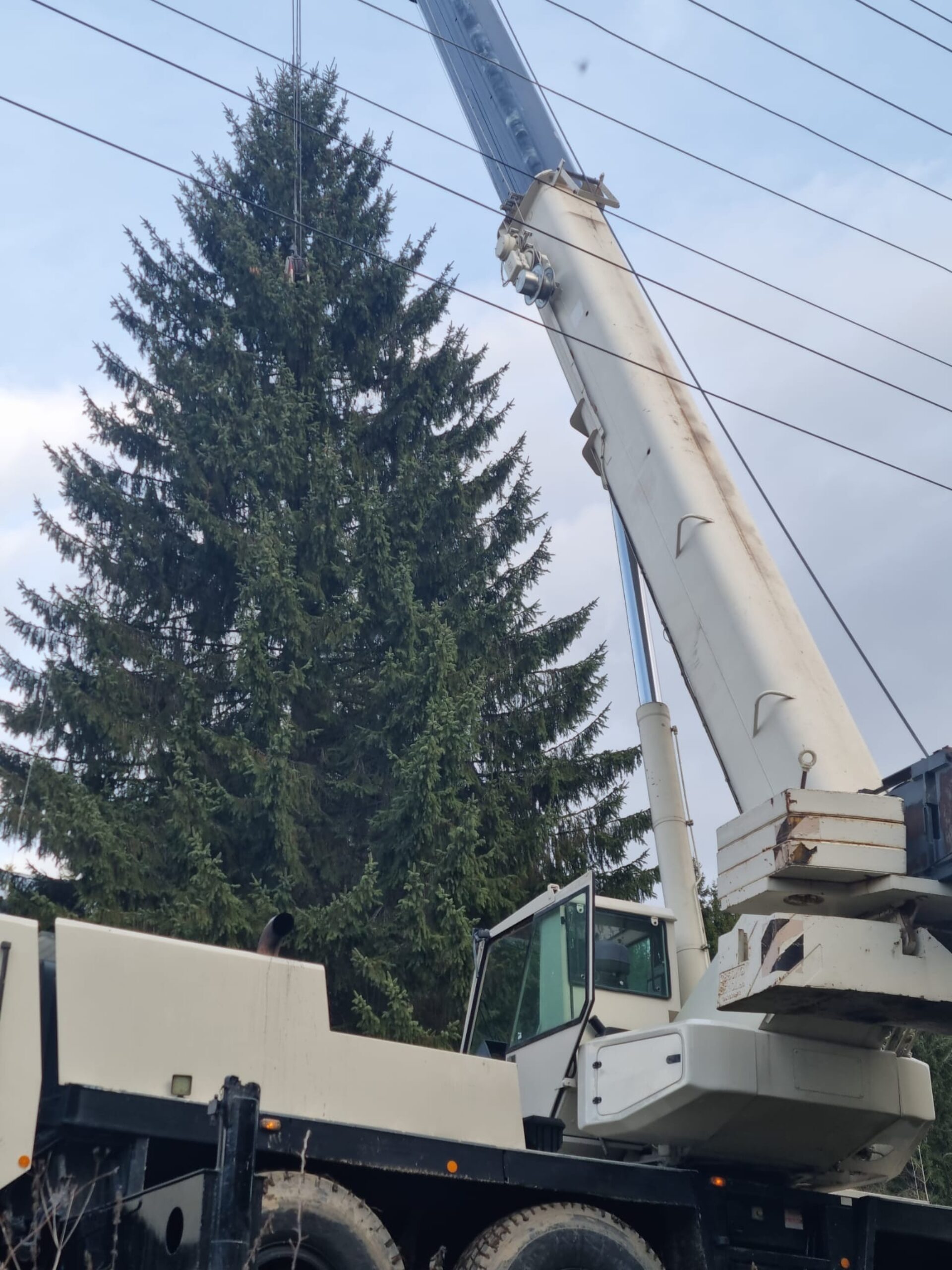 La amplasarea sa pe poziție, înălțimea va fi ajustată, dar coroana sa falnică, care urmează să fie împodobită cu luminițe și beteală, va fi cu siguranță un element de atracție în perioada sărbătorilor de iarnă.