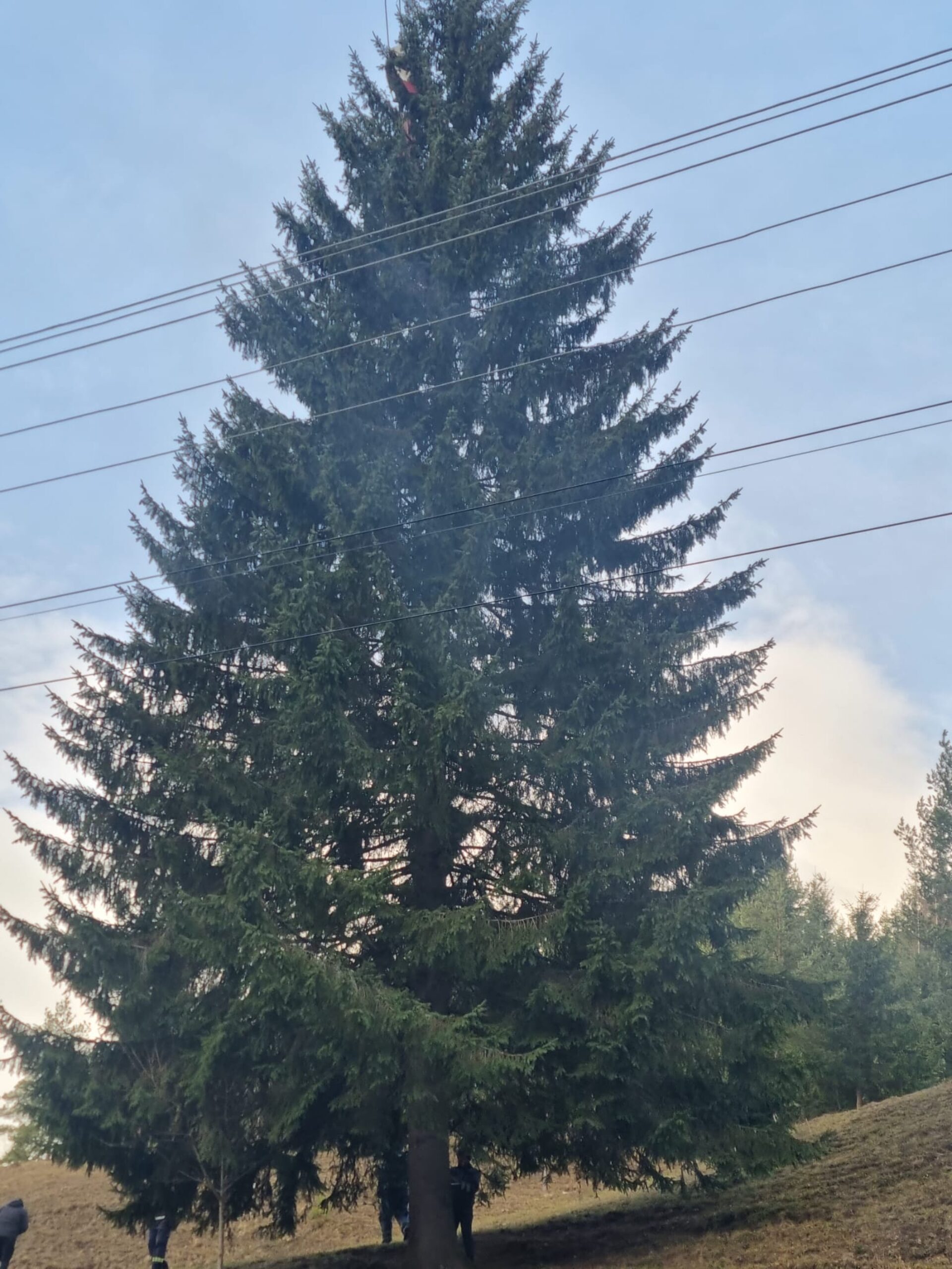 Șeful OS Breaza, Mihai Lițu, a precizat că molidul pregătit pentru a fi dus la Burdujeni are 25 de metri înălțime.