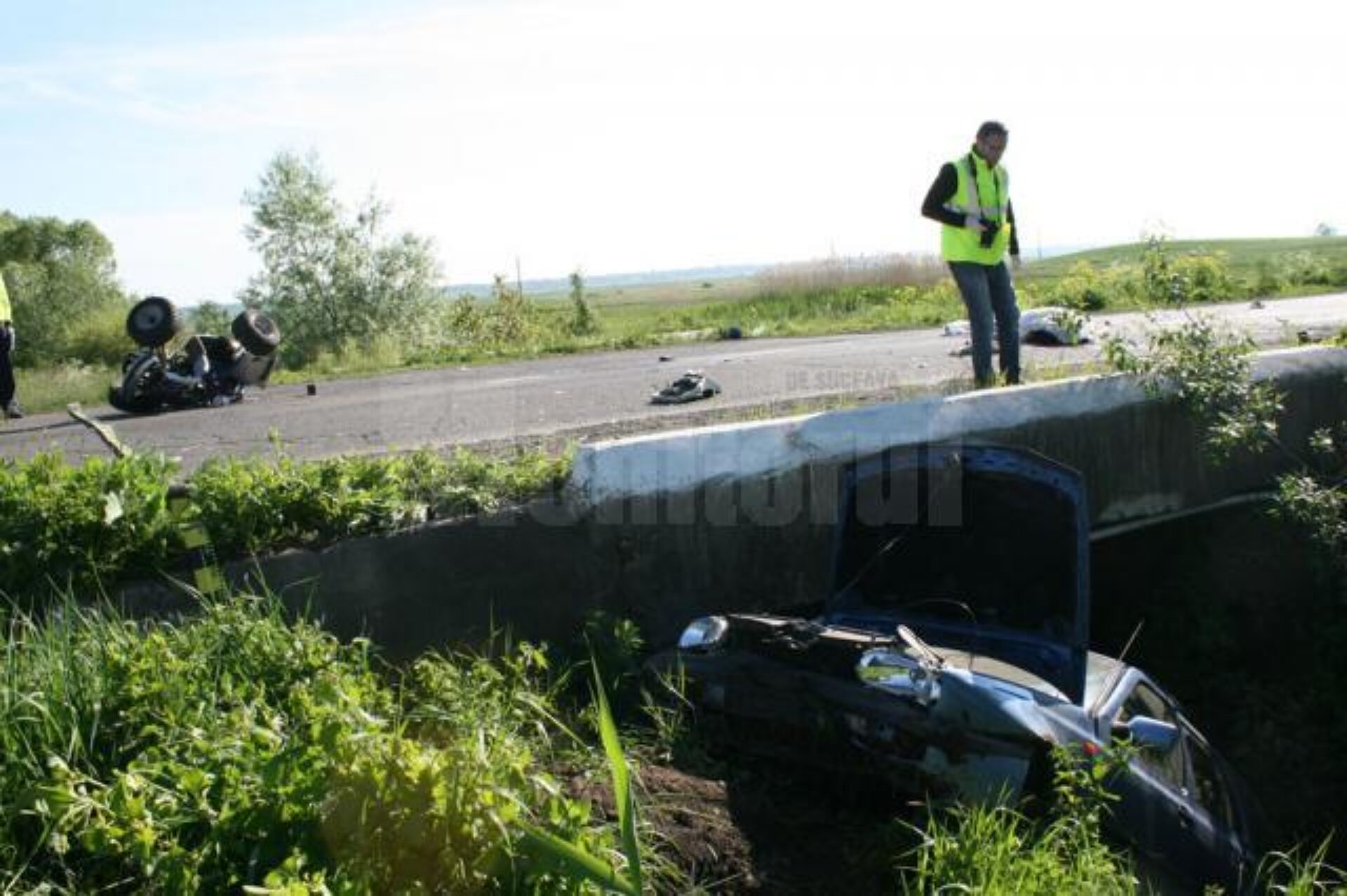 Bătrânul conducea ATV-ul pe un sector de drum în linie dreptă, dinspre Udești, iar la un moment dat a virat stânga, spre un drum agricol. Din spate, venea un VW Golf condus de un bărbat din Știrbăți-Udești, care se afla deja în depășirea ATV-ului. În urma impactului, bătrânul a fost proiectat pe carosabil în timp ce autoturismul a plonjat de pe un podeț și s-a izbit violent de un mal de pământ. Pentru bărbatul de 70 de ani nu s-a mai putut face nimic, personalul medical ajuns la fața locului găsindu-l decedat. Cei patru ocupanți ai autoturismului au fost preluați de ambulanțe SMURD și transportați la Spitalul Județean Suceava. La o primă evaluate cei patru nu aveau leziuni grave. Exact la locul în care s-a produs tragedia, o cruce amintea de un alt accident rutier petrecut în urmă cu mai mulți ani, în urma căruia a murit un polițist.