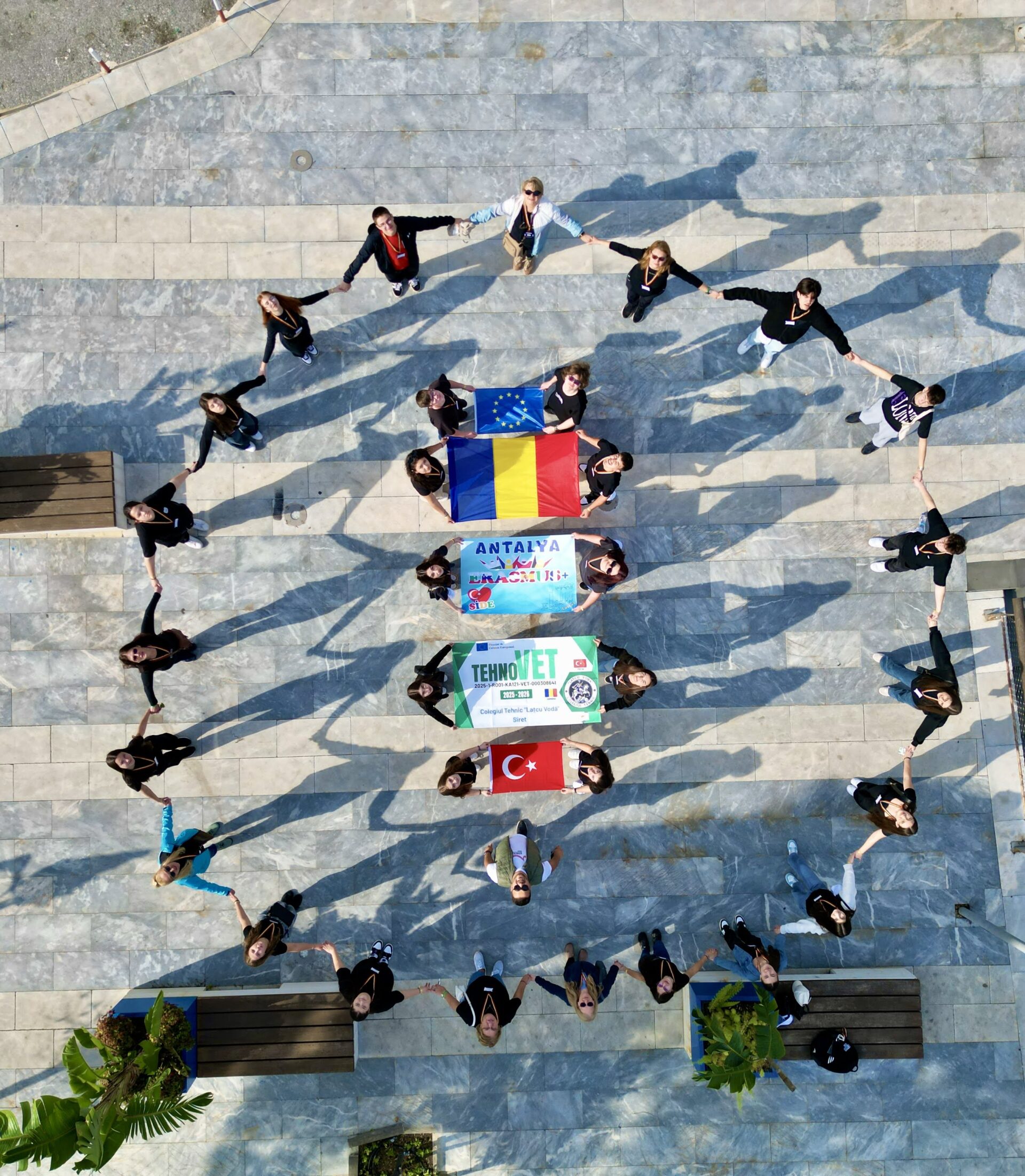 În perioada 23 noiembrie – 6 decembrie 2025, unul dintre cele mai mari grupuri de participanți Erasmus+ ai colegiului nostru au participat la stagii de instruire practică în străinătate. 24 de elevi din clasa a 11-a, specializarea matematică informatică și tehnician în industria textilă au parcurs un program de formare profesională specifică fiecărei specializări, stagiile de practică desfășurându-se în Manavgat-Antalya, Turcia. Pentru specializarea informatică, dintre competentele dobândite putem enumera: capacitatea de a utiliza caracteristici specifice procesării datelor structurate, construirea de soluții pentru probleme simple, rezolvate folosind metode de programare, aplicarea creativă a metodelor de programare pentru a rezolva probleme intradisciplinare sau interdisciplinare, prelucrare media, imprimare 3D, design grafic. Grupul de la calificarea profesională tehnician în industria textilă a desfășurat activități care au urmărit identificarea elementelor de asigurare a calității care corespund principalelor etape ale producției textile, efectuarea activități specifice de control al calității în principalele etape de fabricație a produselor textile, identificarea defectele care pot apărea în diferite faze ale proceselor de fabricație, specifice locului de muncă, realizarea produse textile specifice locului de muncă cu respectarea parametrilor tehnologici și de calitate, realizare sigle personalizate inserate pe produsele textile. Toți elevii au beneficiat și de vizitele culturale în împrejurimi, dobândind cunoștințe directe despre istoria, frumusețea locurilor, gastronomia și valorile culturale turcești. Astfel elevii Colegiului Tehnic „Lațcu Vodă” Siret devin cetățeni europeni mai deschiși, adaptabili și mai pregătiți pentru un mediu de lucru internațional.