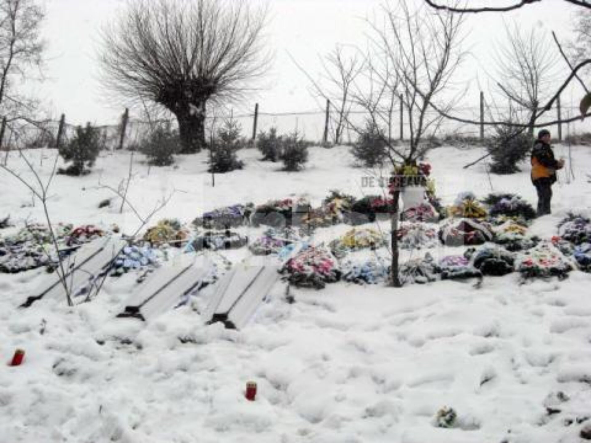 Sute de credincioși, sub lacrimile cerului de decembrie, o infinitate de fulgi de zăpadă, i-au condus pe ultimul drum, într-o tăcere apăsătoare.
